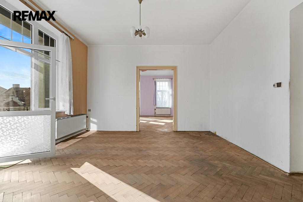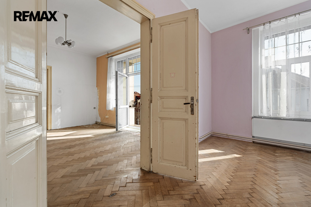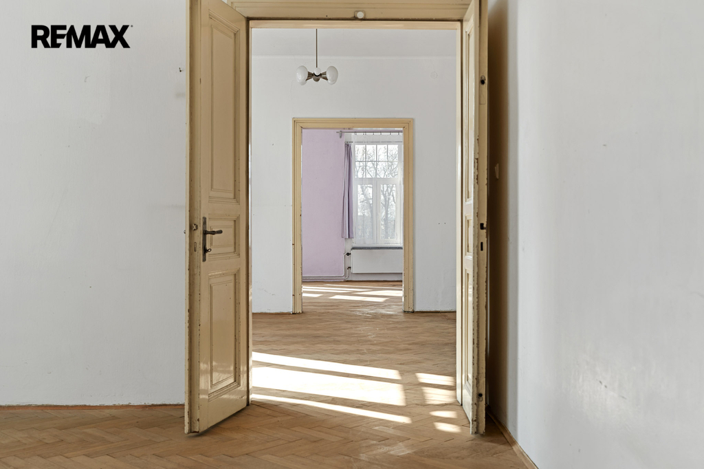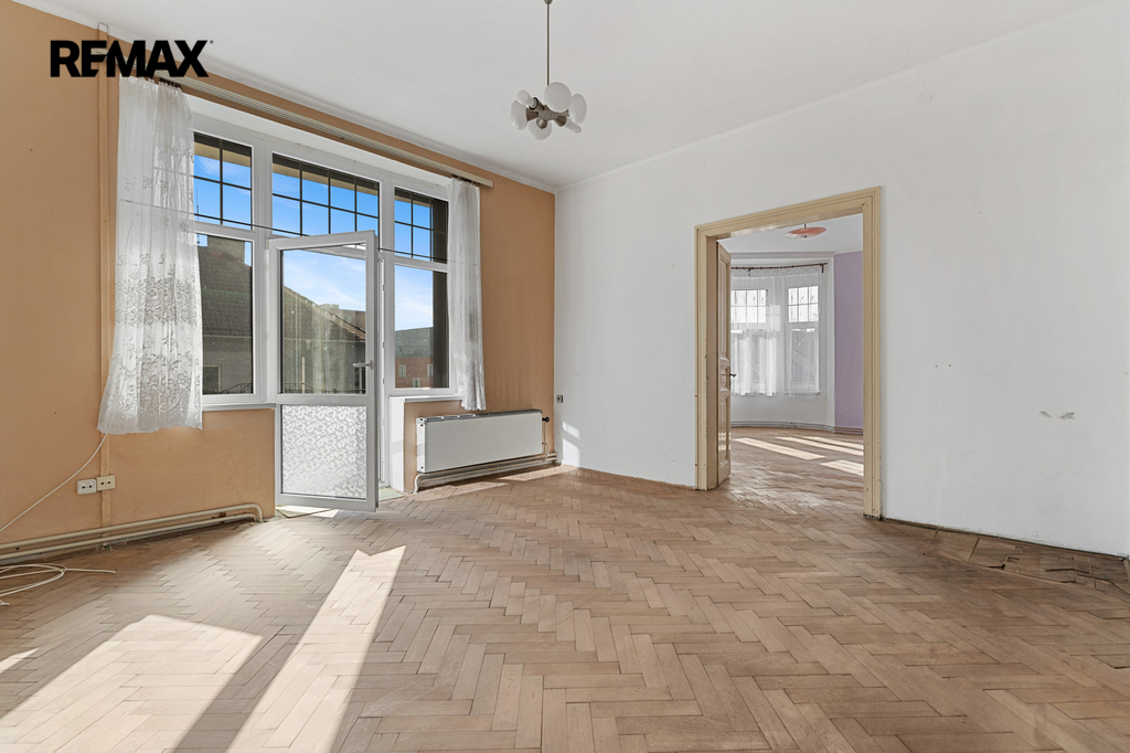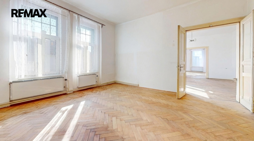 Nabídka, o kterou se zajímáte má pár jednoduchých údajů. Byt 3+1 s lodžií a několika menšími úložnými prostory, velkorysá výměra samotného bytu včetně příslušenství činí 126,4 m2. Oním příslušenstvím je sklep čítající 13,6 m2. Na samotný byt s lodžií, která má přes 5 m2 tedy připadá skoro 113 m2 obytného prostoru, který po dlouhá léta neprošel zásadní renovací či rekonstrukcí. Potenciál, který se bytě skrývá, tak před ním neutečete. Tak například pomyslný střed bytu. Jsou zde dvě komory, které lze dispoziční úpravou včlenit do bytu. Může zde být koupelna nebo jimi rozšířit kuchyň a vytvořit tak velkorysé srdce domova s velkým stolem. Stvořit tak místo, kde se rodina setkává, kde se klábosí s návštěvami, kde trávíte s blízkými čas oběda, snídaní, večeří. Prostor bytu je sám o sobě velkorysý a prostorný. Zde teprve pochopíte rozdíl mezi panelovým bytem a jedinečným a individuálně řešeným prostorem. Mimo jiné – české designové sklo v podobě lustru se bude na vysokém stropě skutečně vyjímat. A co teprve obraz nebo velkoformátová fotka z vašich cest.