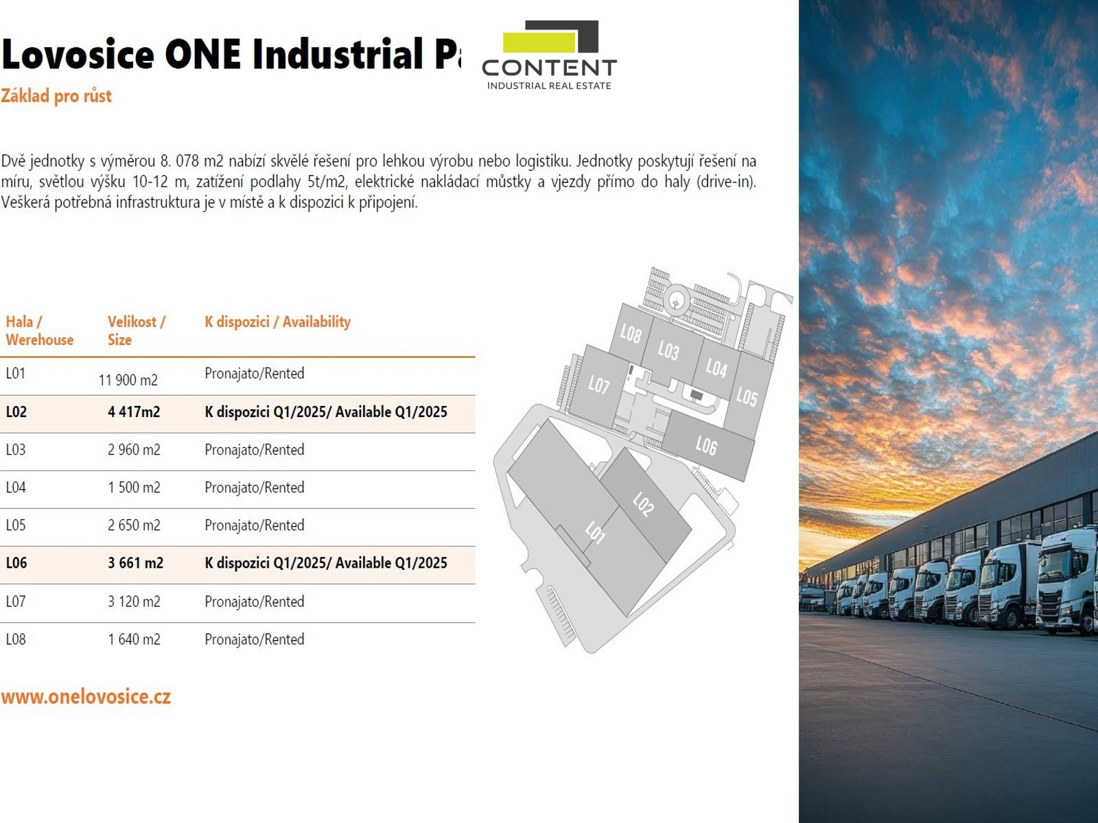 - budova (L02) o velikost 4129 m², k dispozici ihned,