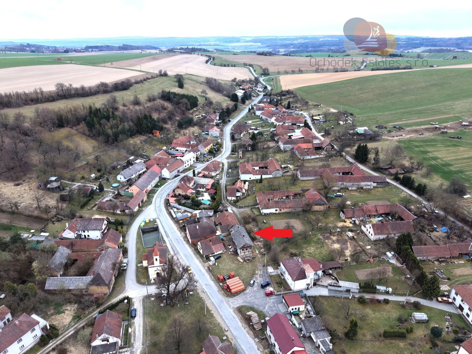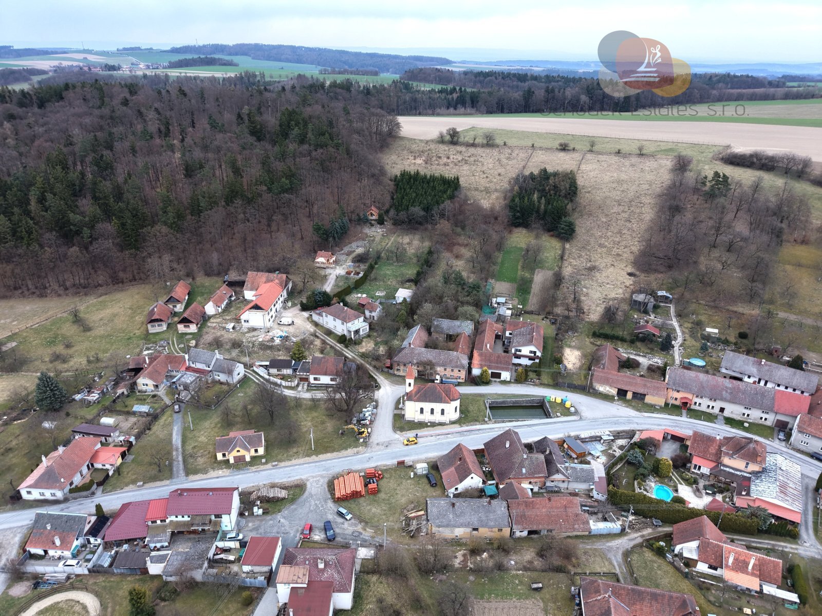 Pozemek má 241 m² a leží přímo na návsi, v samotném srdci obce, jen pár kroků od malého kostelíka, který dotváří klidnou atmosféru místa.