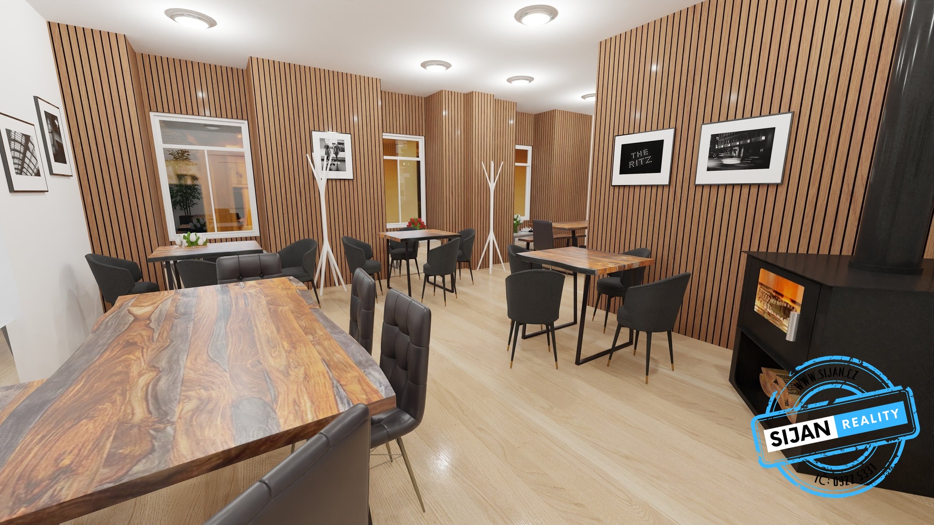 V přízemí najdete stylové posezení s krbem a barem, ideální pro večerní pohodu hostů.