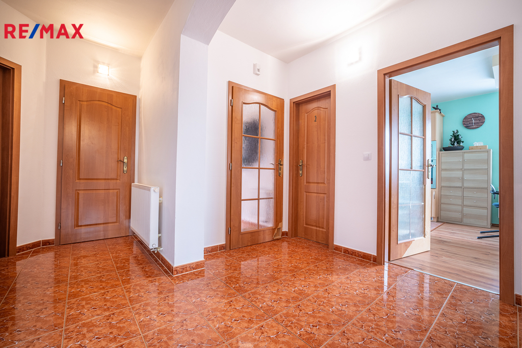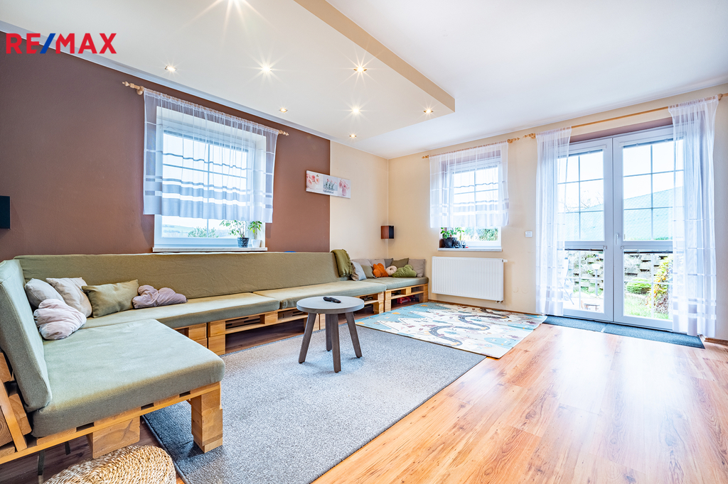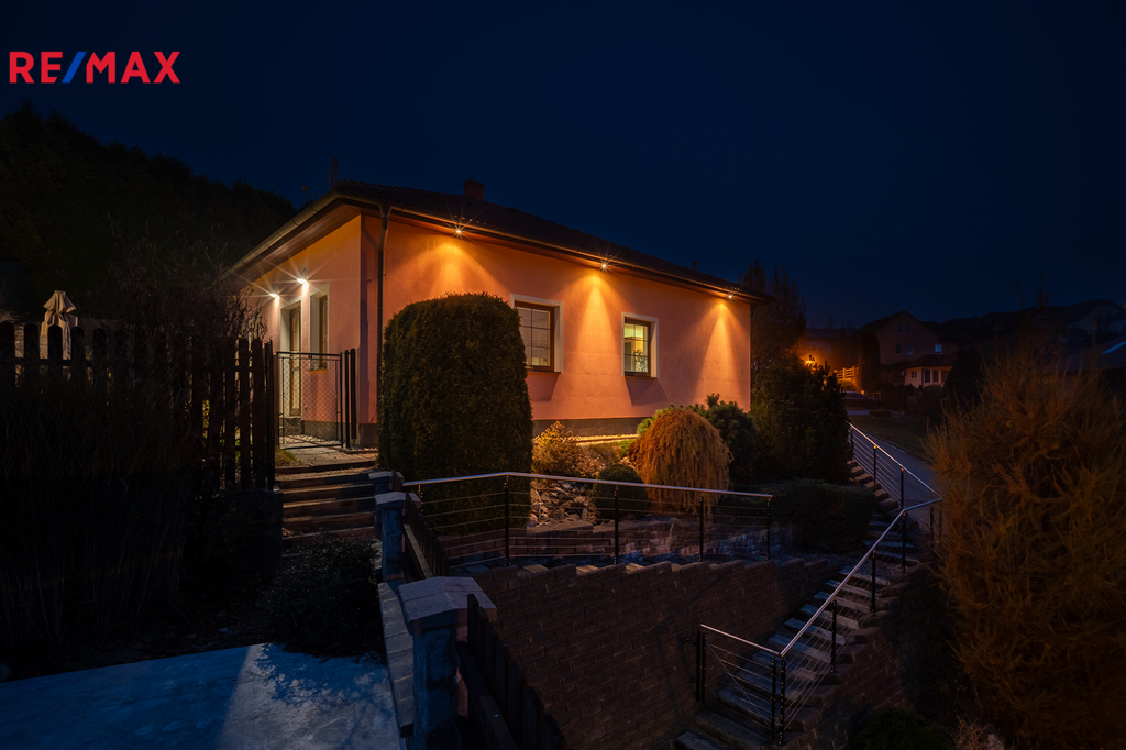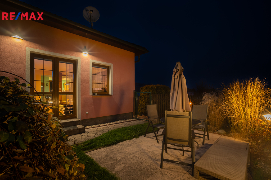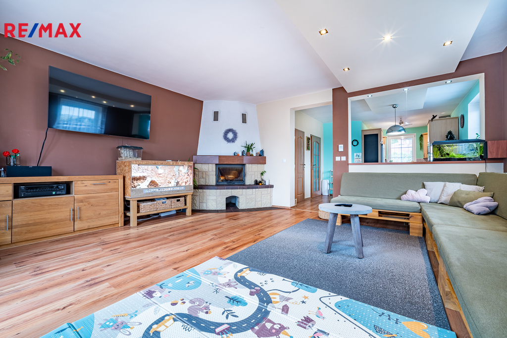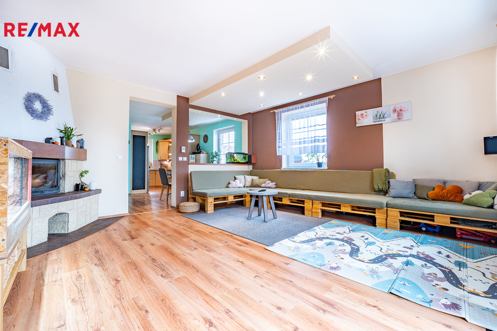 Dům je přízemní, byl postaven v roce 2006 a nabízí praktickou dispozici 4+kk s užitnou plochou 110 m². Dominantou domu je prostorný obývací pokoj s krbem, který volně navazuje na jídelní kout a kuchyni ve tvaru „U“. Odtud je krásný výhled do zahrady a zároveň přímé propojení s venkovním prostorem. Dále jsou zde tři samostatné pokoje – ložnice, dětský pokoj a pracovna, které poskytují dostatek prostoru i soukromí pro každého člena rodiny. Součástí domu je také prostorná koupelna s vanou i sprchovým koutem, samostatné WC, technická místnost s pračkou a plynovým kondenzačním kotlem, který zajišťuje vytápění domu i ohřev teplé vody. Vstupní zádveří nabízí šatní prostor a úložné místo. Podkroví je již stavebně připravené k rozšíření až o tři samostatné obytné pokoje – jsou zde zavedeny rozvody vody i odpadu, což výrazně usnadní budoucí vestavbu dle vašich představ.