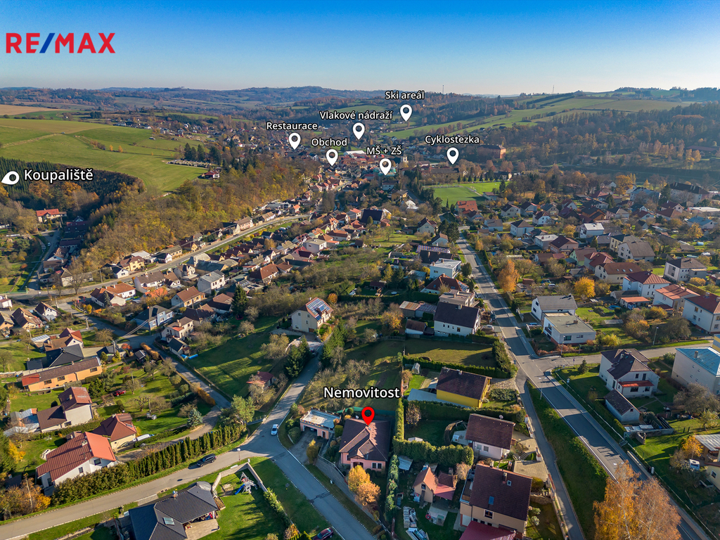 Obec je obklopena přírodou, ideální pro procházky, sport i rodinný život.