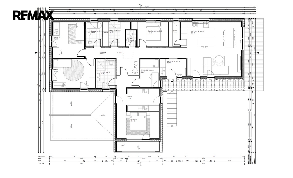 • vydané stavební povolení – moderní rodinný dům (bungalov ve tvaru T)