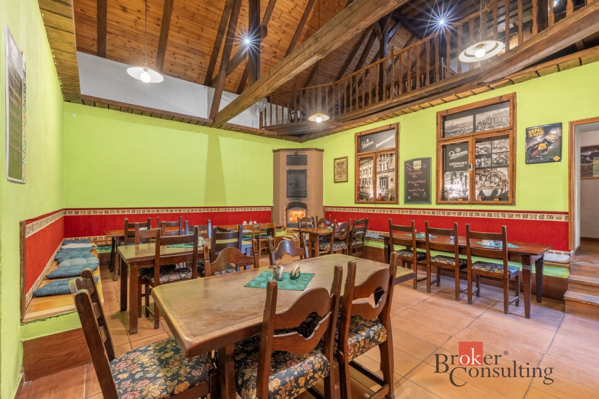 V zimních měsících si mohou zákazníci vychutnat příjemné posezení u krbu, zatímco v létě je k dispozici částečně krytá zahrádka s venkovním výčepem.