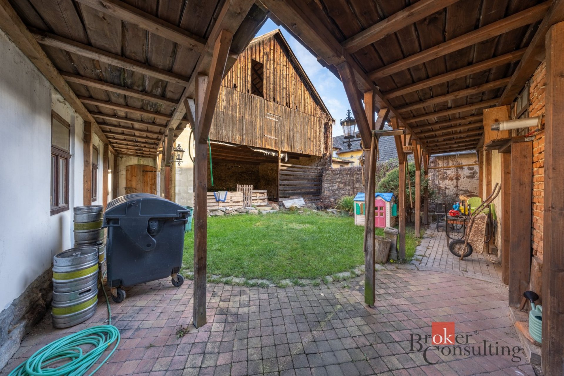 Součástí prodeje je také oddělená bytová jednotka o dispozici 1+kk s možností její rozšíření a garáž se stodolou.