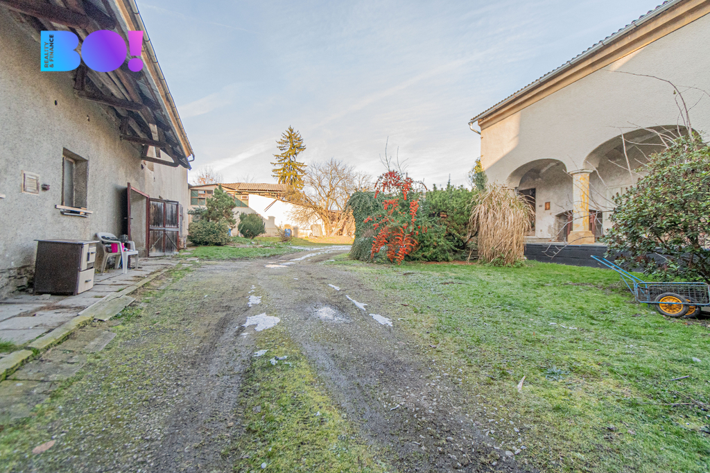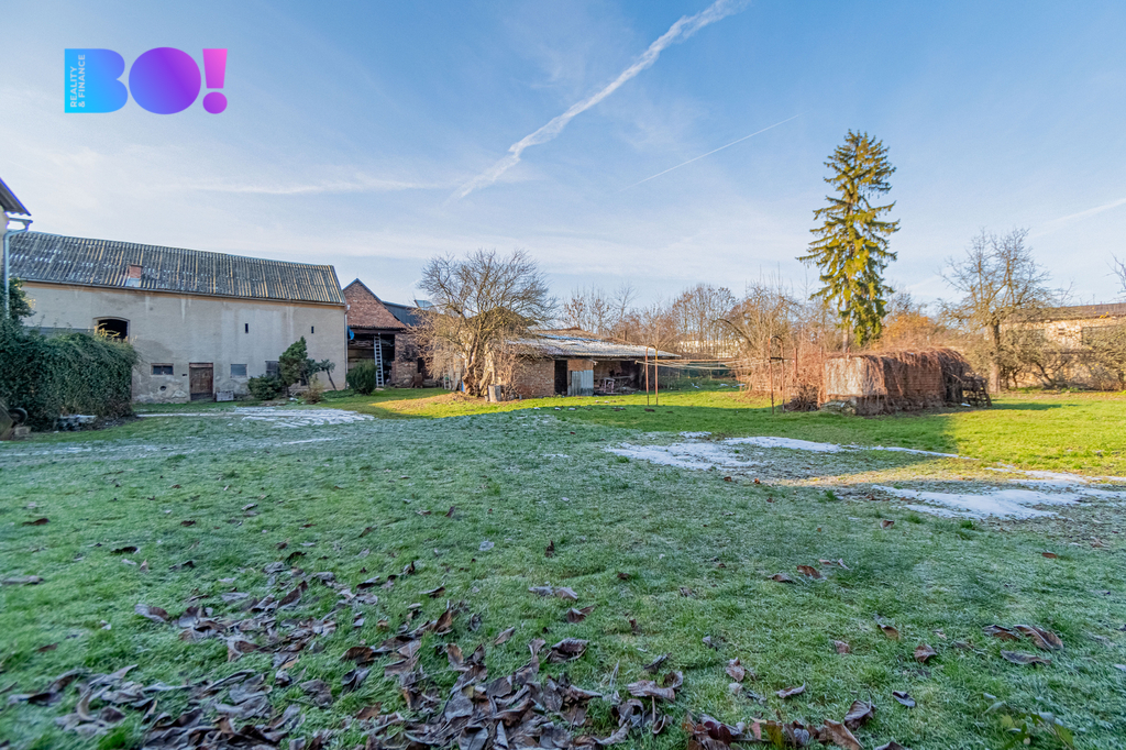 K domu přiléhá prostorná zahrada, garáž, chlévy / hospodářské budovy – výborné pro rozšíření bydlení, dílny, skladu, podnikání nebo menší provozovnu.