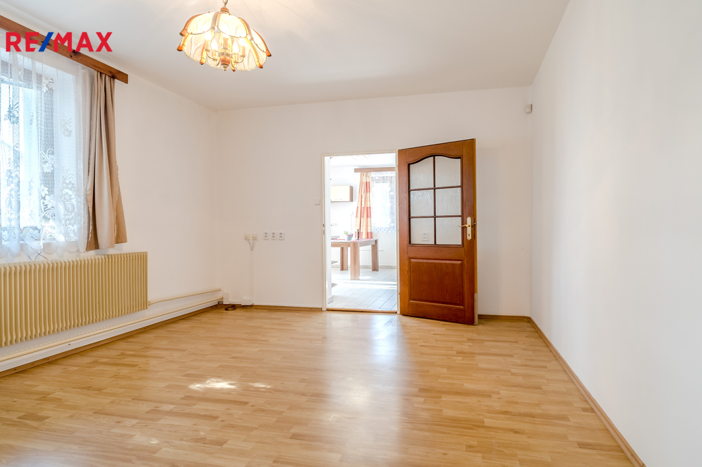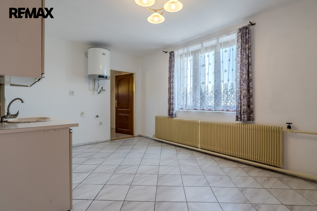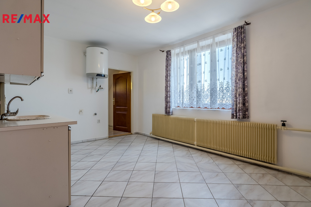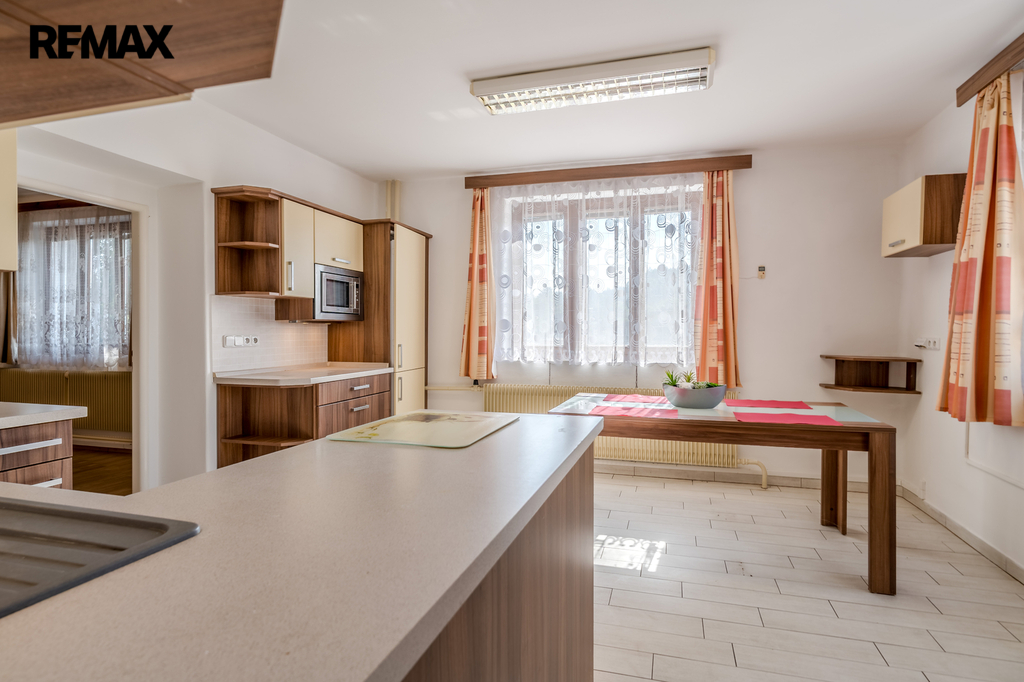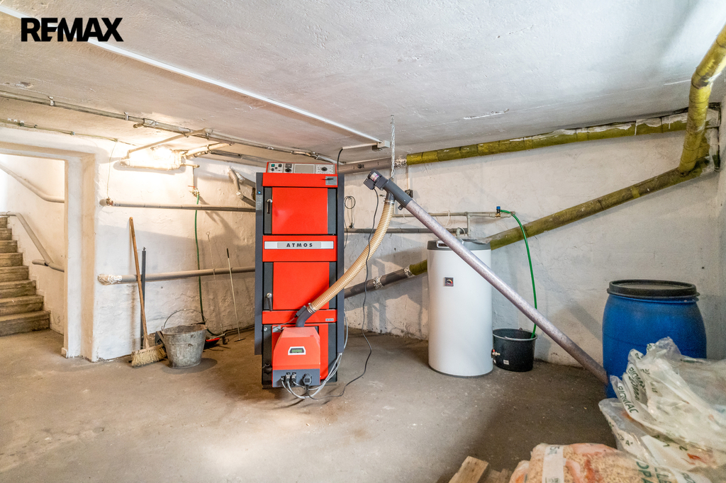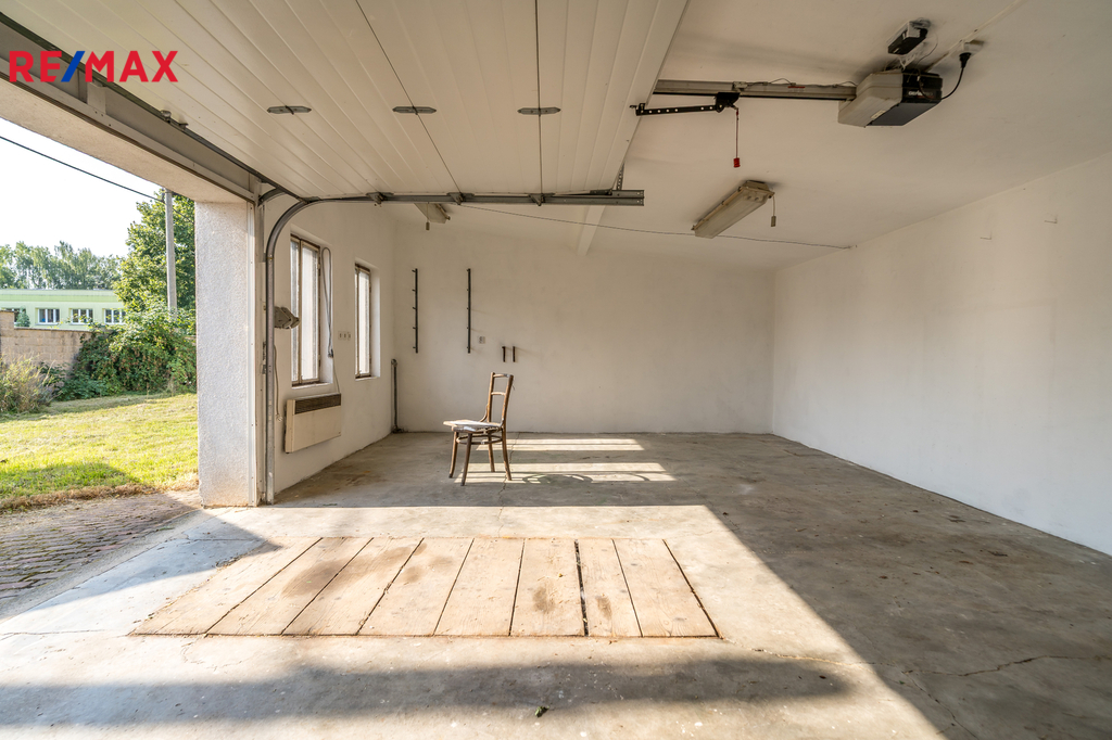 V domě jsou dvě samostatné bytové jednotky, obě mají dispozici 2 + 1 včetně chodby, spíže, koupelny a WC. Plocha bytu v přízemí je 77 m2, v 1. poschodí je byt o velikosti 74 m2. Obě bytové jednotky mají společný vchod přes menší verandu, nad kterou je balkónek přístupný z horního bytu. Součástí domu je sklep o výměře 21 m2, ve kterém je kotel na pelety (ekologický - třída A). Dům je zateplen, střecha je pokryta betonovými taškami BRAMAC, rozvody elektřiny i topení jsou v mědi. Na pozemku v těsném sousedství domu jsou dvě garáže, jedna je samostatná a druhá je spojená s dílnou. Z domu i přilehlých garáží se vychází na rovinatou zahradu, na které je dřevěná pergola a skleník. Zahrada je bez dřevin, ovocných či okrasných stromů a záleží pouze na fantazii budoucího majitele, jak zatravněný pozemek využije. Kolem celé nemovitosti je neprůhledné oplocení, které zaručuje maximální soukromí. Dům byl nedávno vymalován a nabízí se částečně vybavený. Na pozemek vstupujeme přímo z obecní komunikace.
