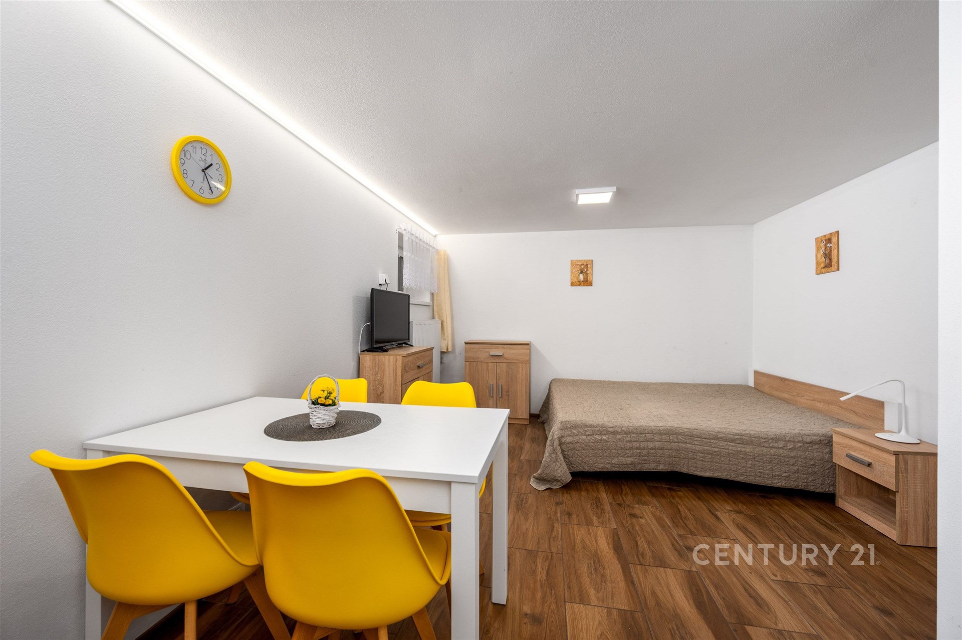 V suterénu domu se nachází ještě apartmán velikosti 2+kk s vlastním vchodem, který je využíván jako ubytovací zařízení. Roční příjem z jeho provozování dosahuje až 250 000 Kč, a lze ho kromě jiného použít třeba i ke splácení hypotéky. V prvním patře se nachází kuchyně s obývacím pokojem, ložnice, technická místnost a koupelna se sprchovým koutem a WC. Ve druhém patře jsou dva pokoje a koupelna s rohovou vanou a WC.