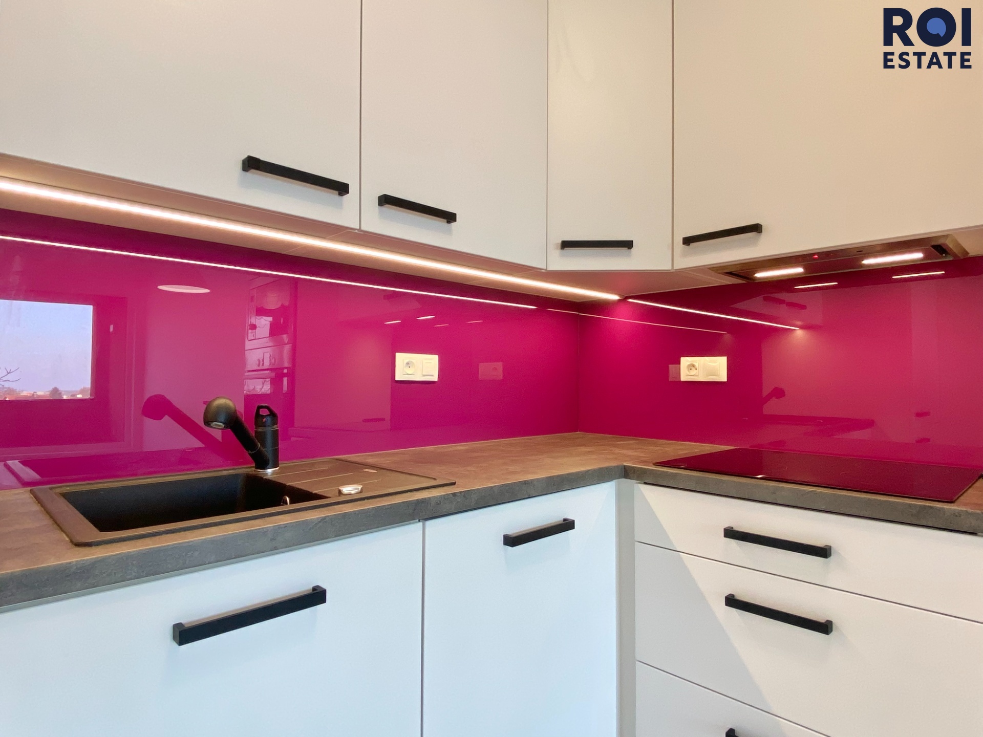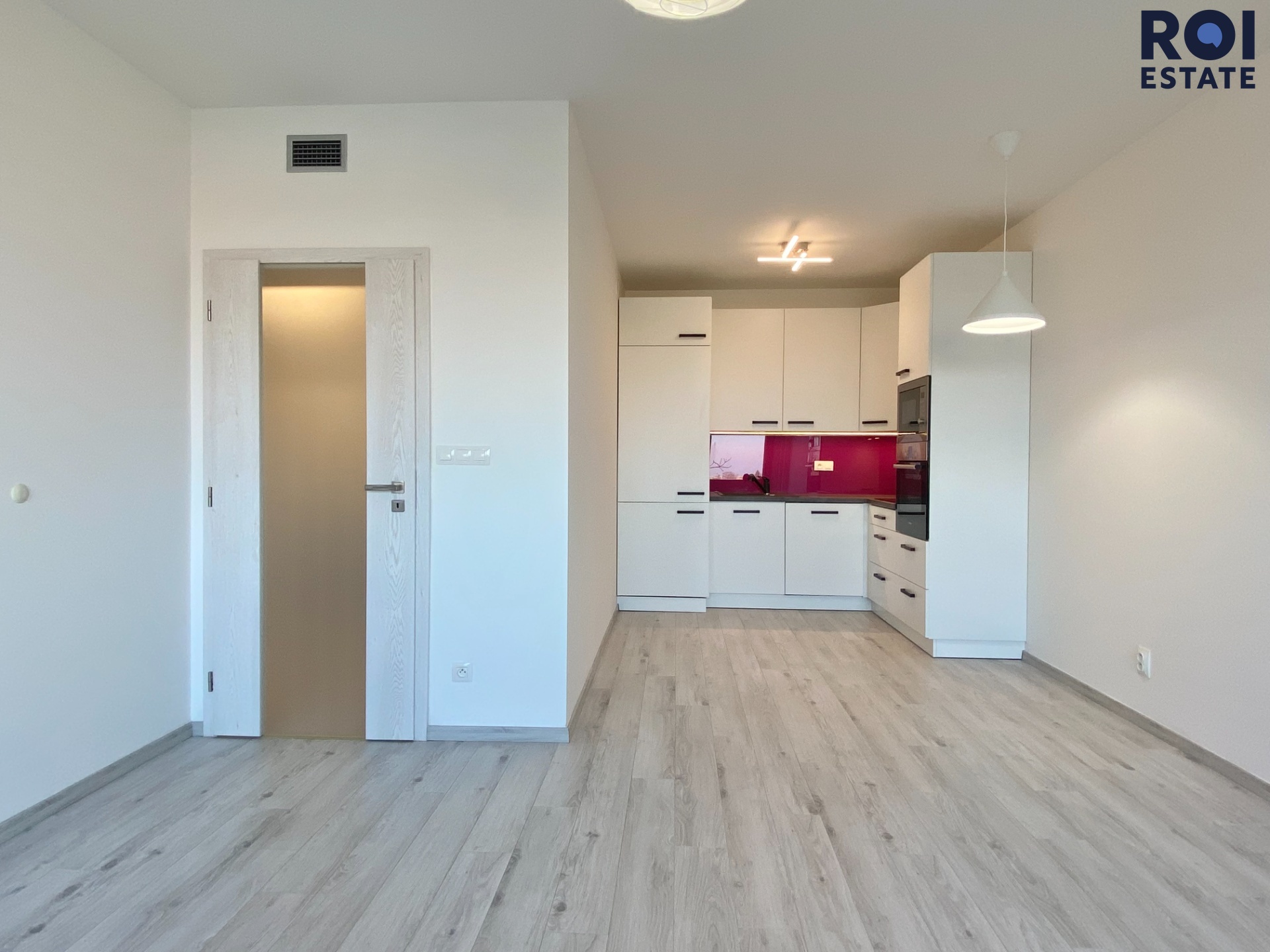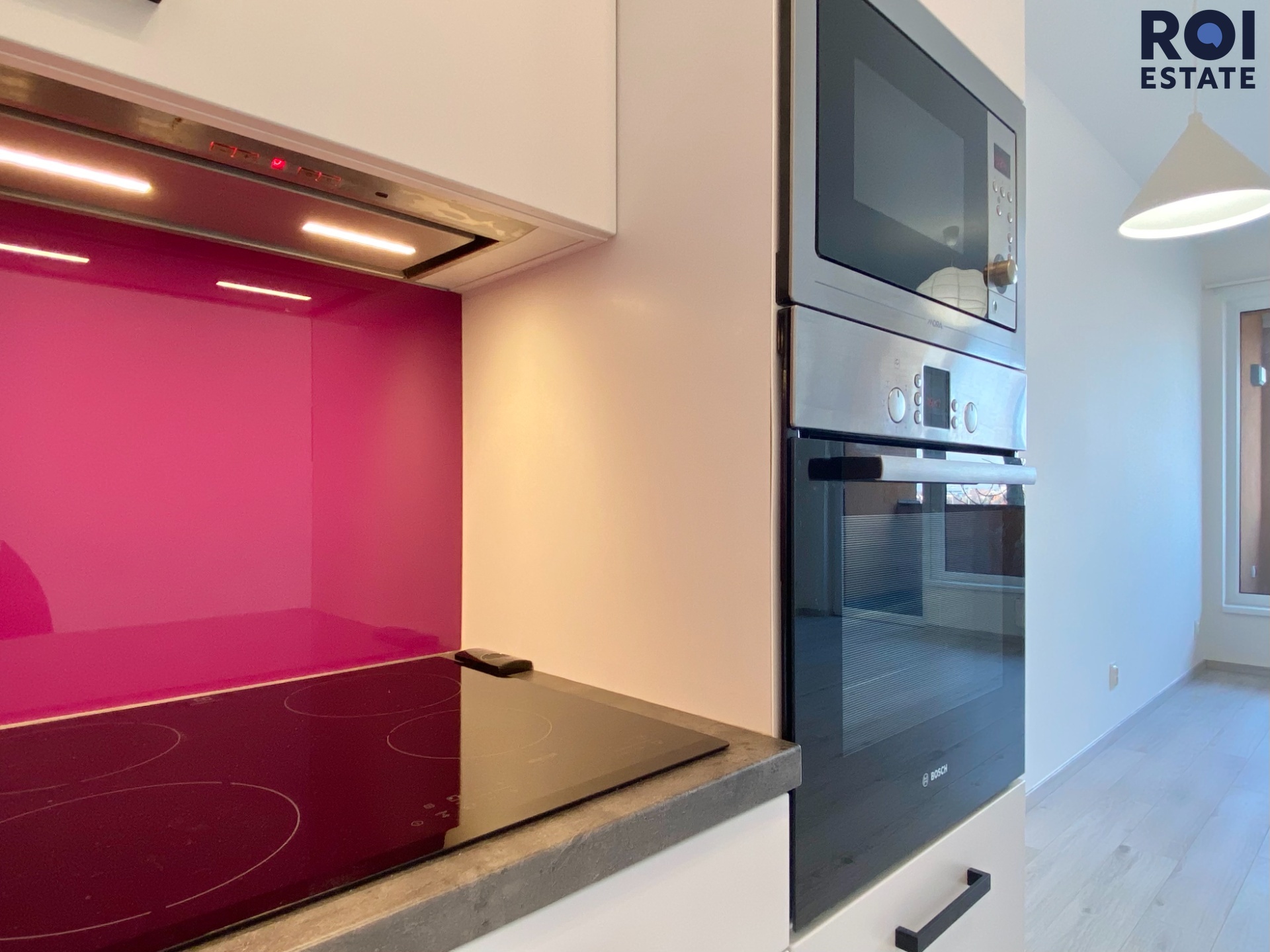 V hlavní místnosti bytu je dostatek prostoru pro společné žití s východem na balkón a novou kuchyní vybavenou kvalitními novými spotřebiči.