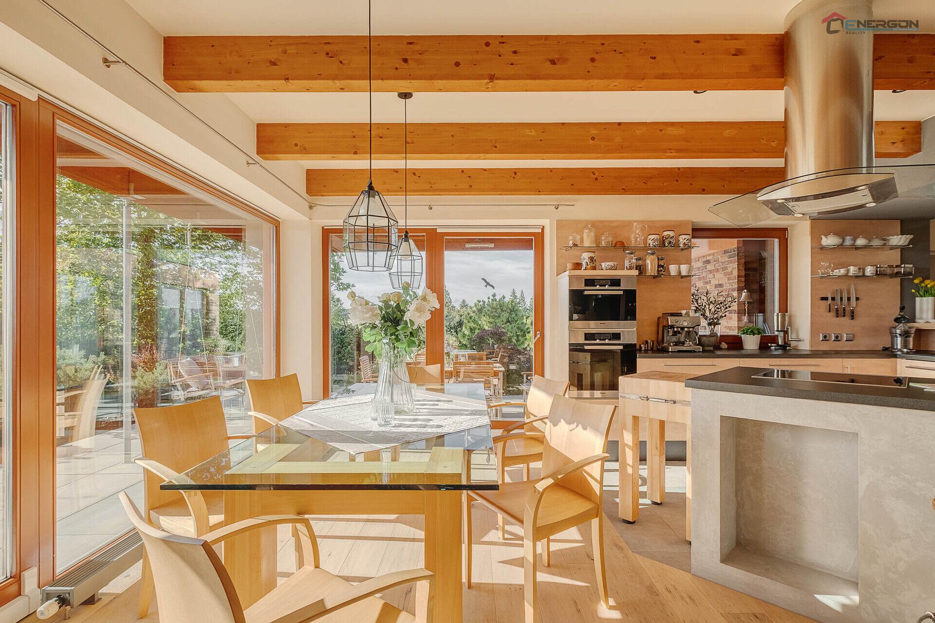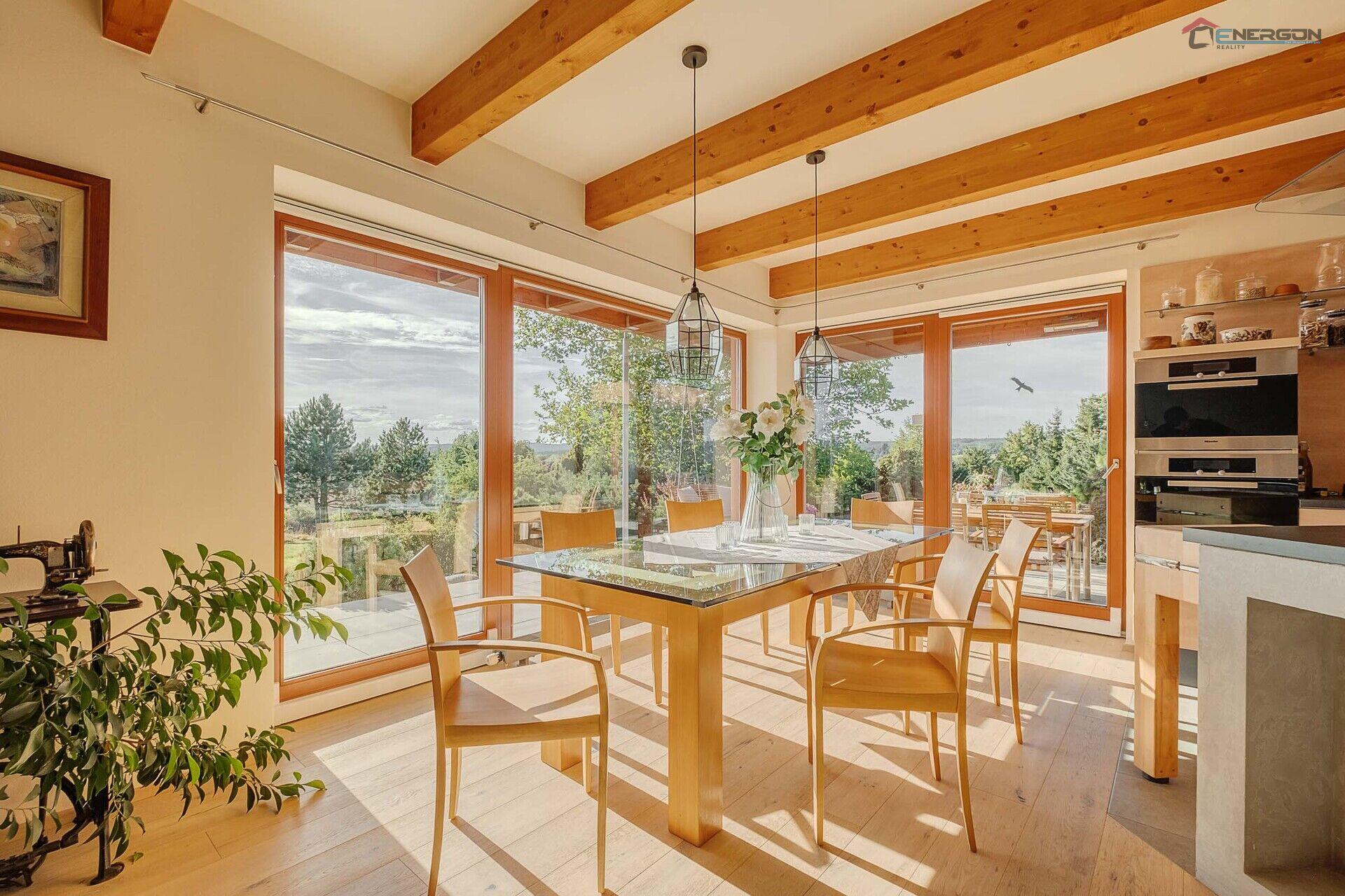 I když jste uvnitř domu, cítíte se spojeni se zahradou a okolní, krásnou přírodou.