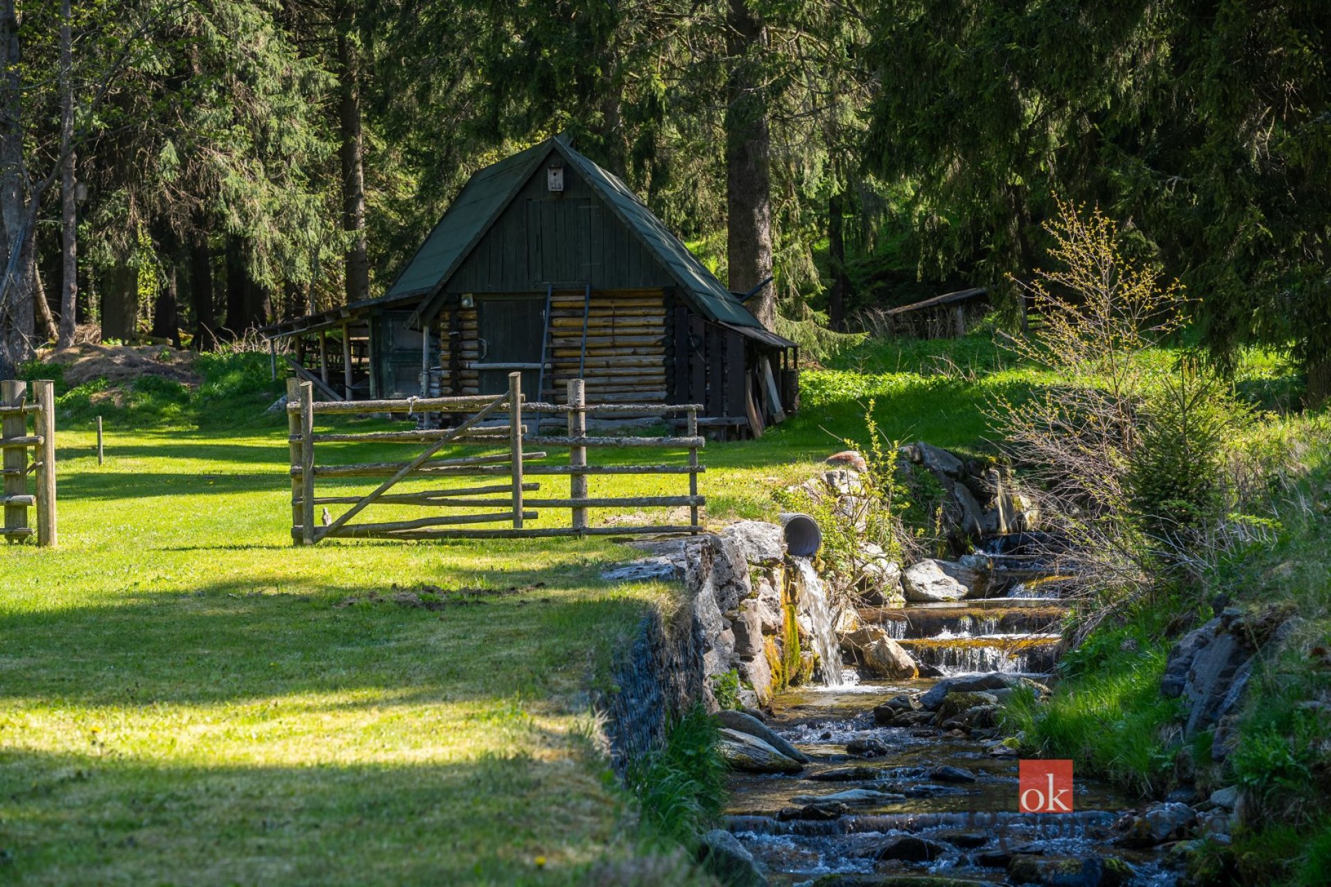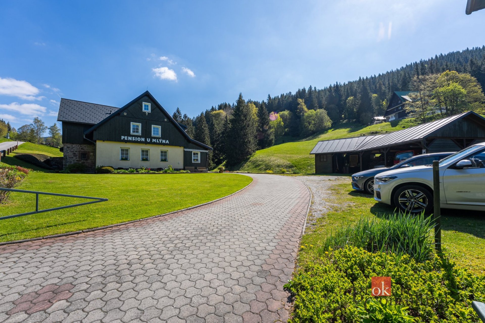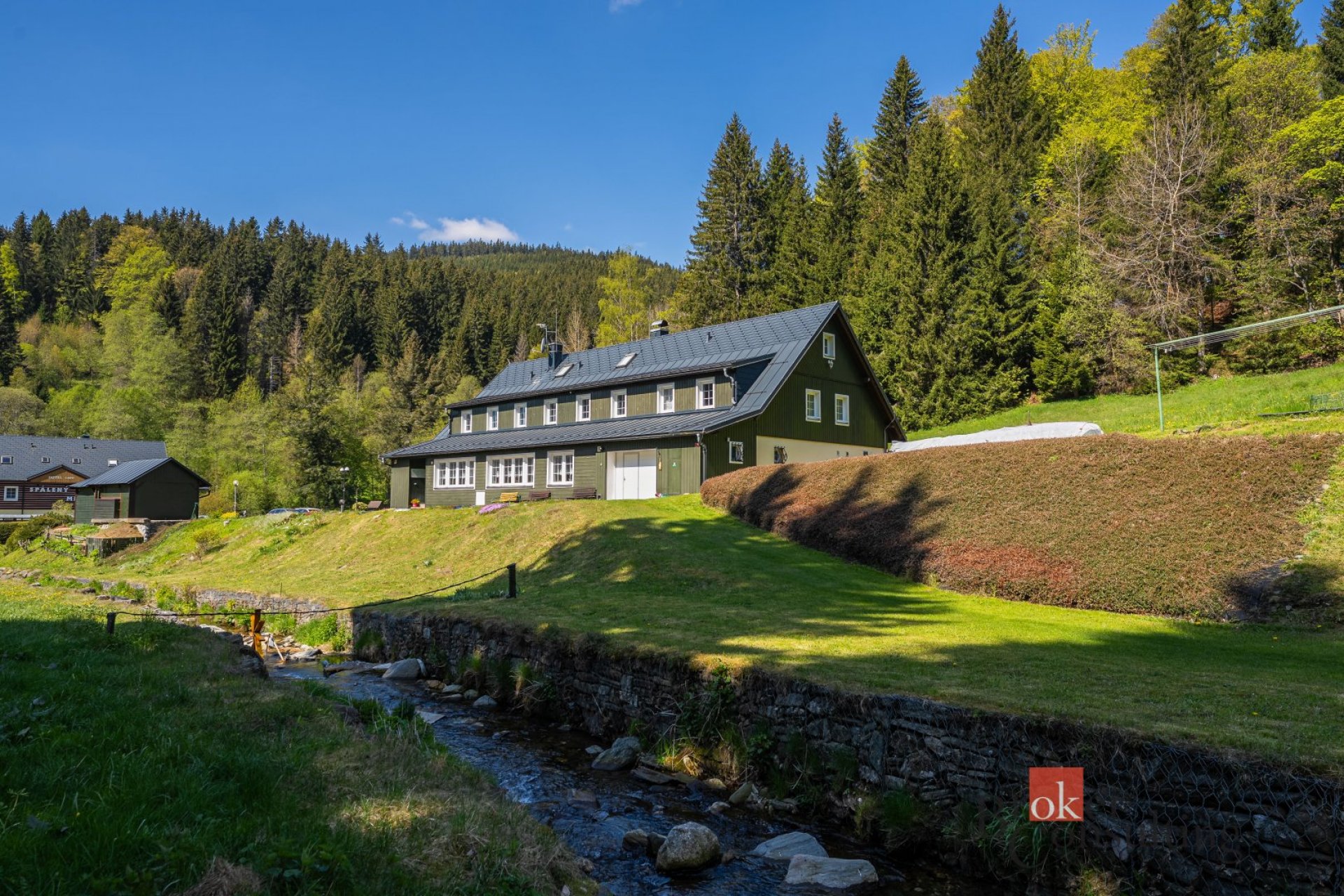 K penzionu s malebným zákoutím u potoka, které vytváří jedinečnou atmosféru, náleží také rozlehlý pozemek o velikosti 19641 m².