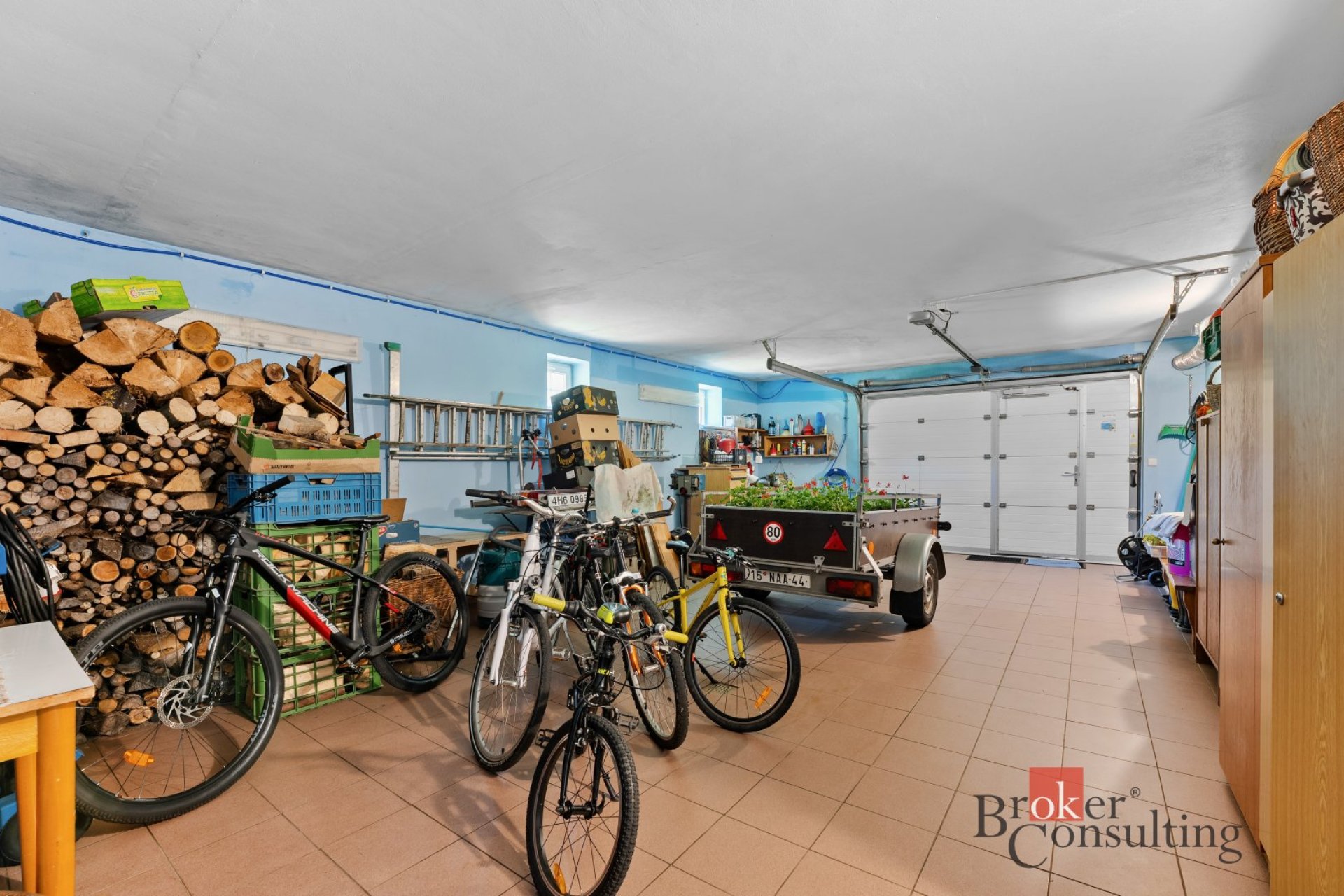Součástí objektu je také garáž, technické místnosti, krytý přístřešek pro auta i venkovní parkovací místa. Užitná plocha domu je 528 m².