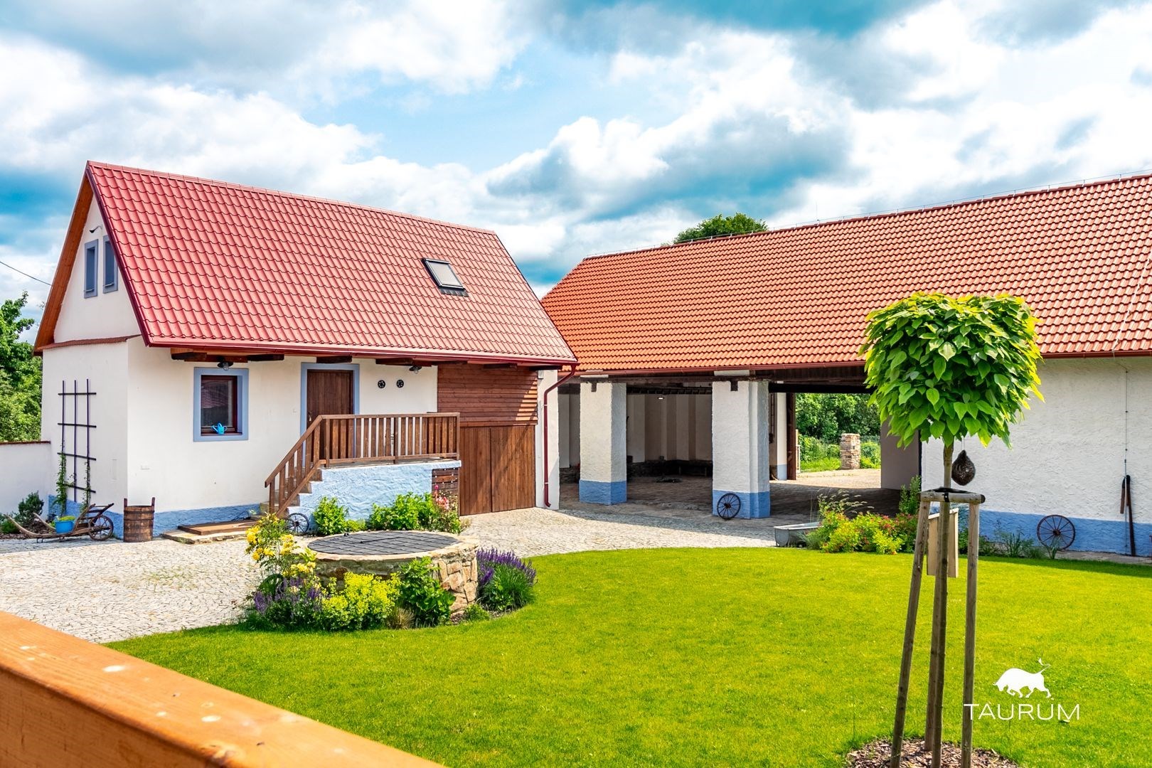 Za touto stodolou je velká zahrada o výměře 4.600 m2 se samostatným elektricky ovládaným vjezdem pro vozidla. Celková výměra pozemku je 5.387 m2.