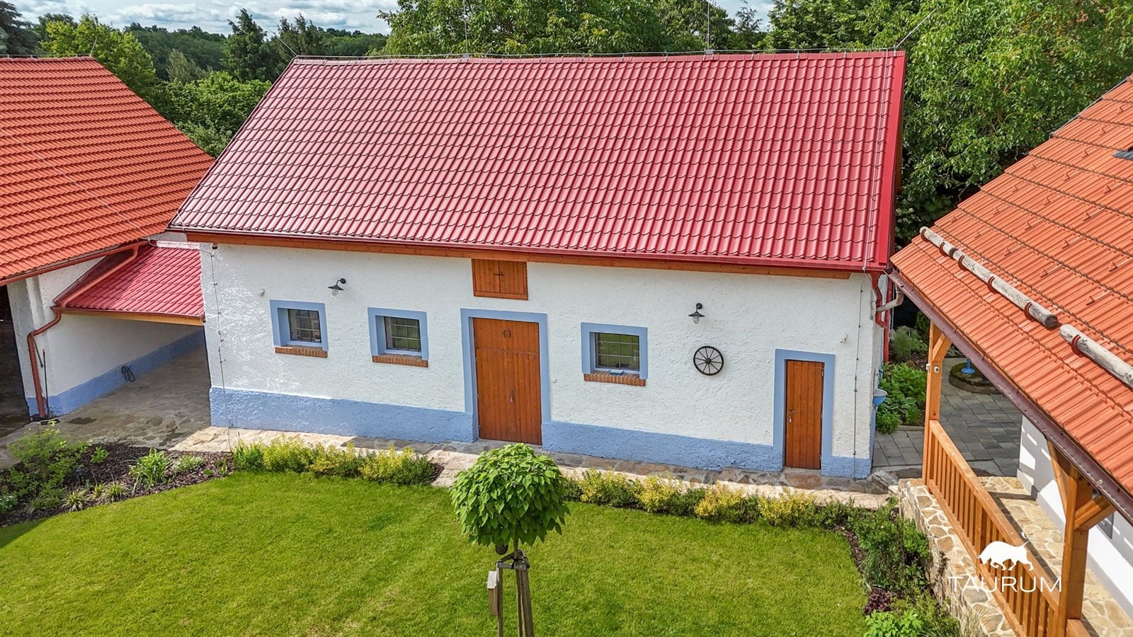 Dále je zde dům pro hosty se sklepem a garáží, který může sloužit například jako klubovna (v tomto domě je třeba dokončit interiér schody do patra a podlahovou krytinu v patře). Další stavbou je původní konírna, která dnes slouží jako prostor pro uskladnění techniky a nářadí. Na konírnu navazuje prostor připravený na vestavbu sauny a posledním objektem je opravdu velká původní stodola, která je stejně jako všechny doprovodné stavby zrekonstruovaná a je v ní příprava na vestavbu venkovní letní kuchyně a prostor pro promítání malé kino.