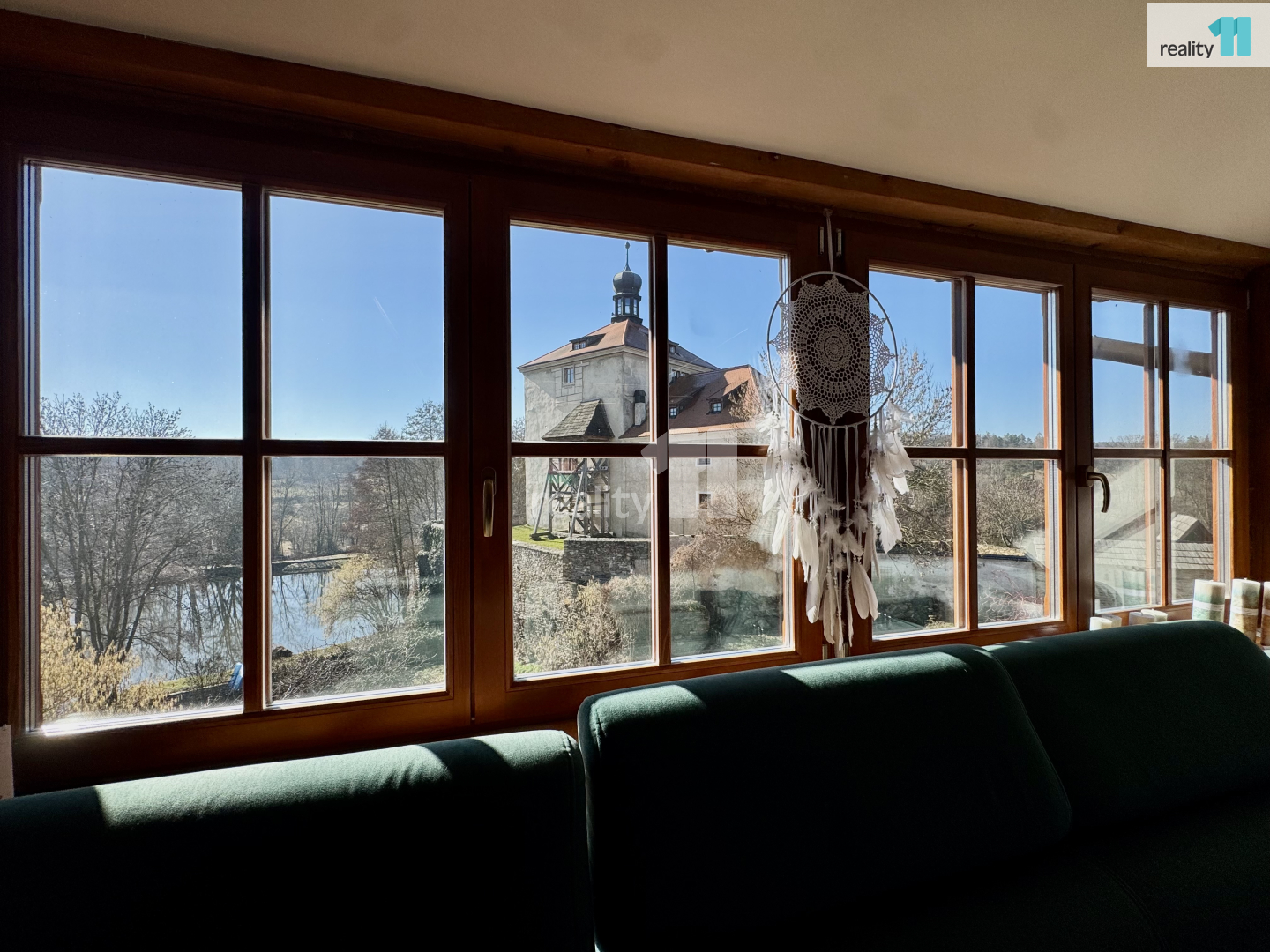 V horním patře je podkrovní byt 3+kk o ploše 180 m² s terasou a výhledem na tvrz. Vhodný pro vlastní bydlení, dlouhodobý pronájem i rozšíření ubytování.