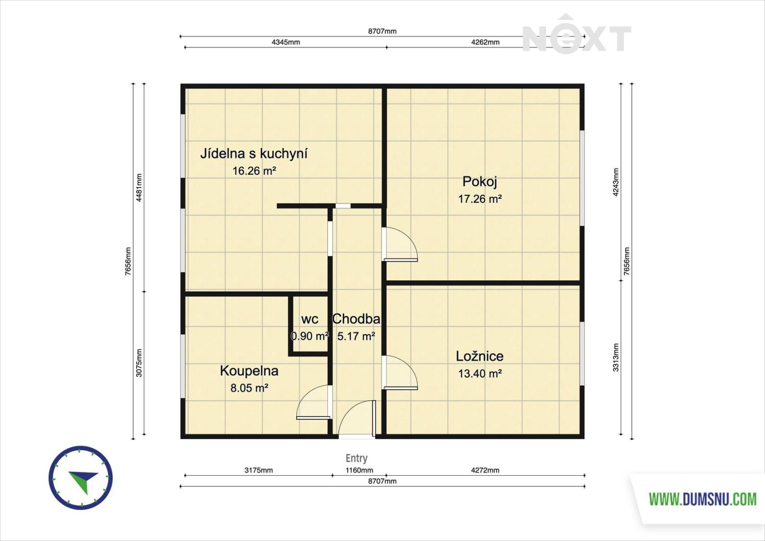 - Celková podlahová plocha: 56 m²