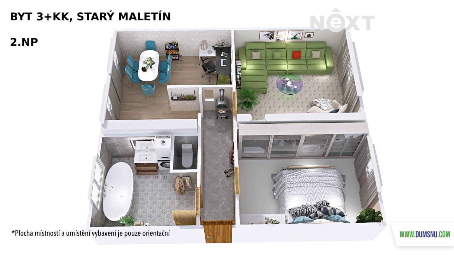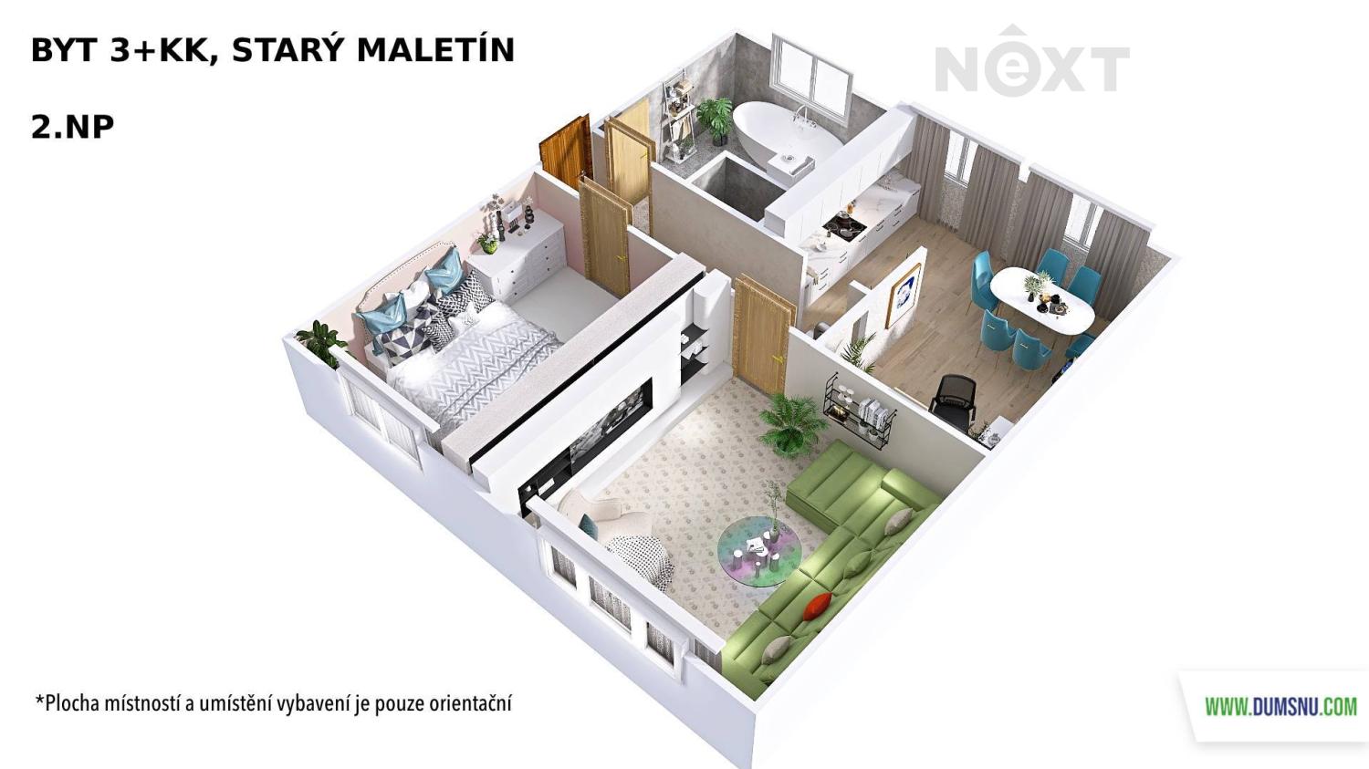 - Dispozice bytu: 3+kk