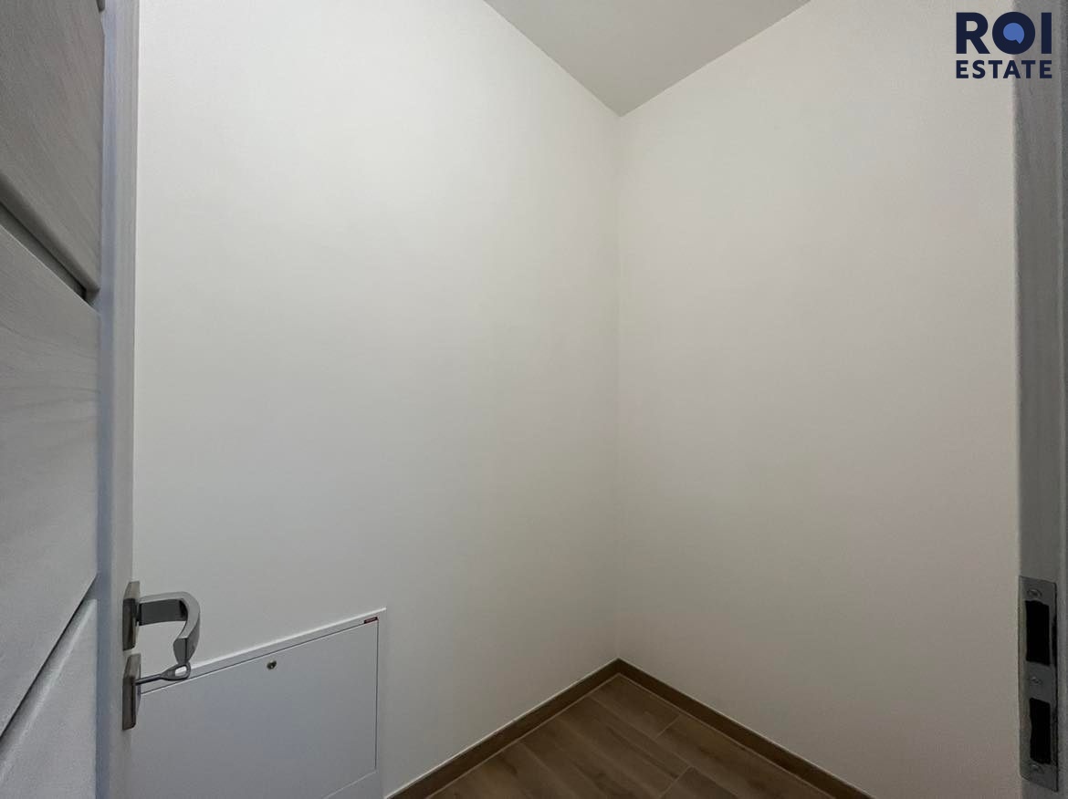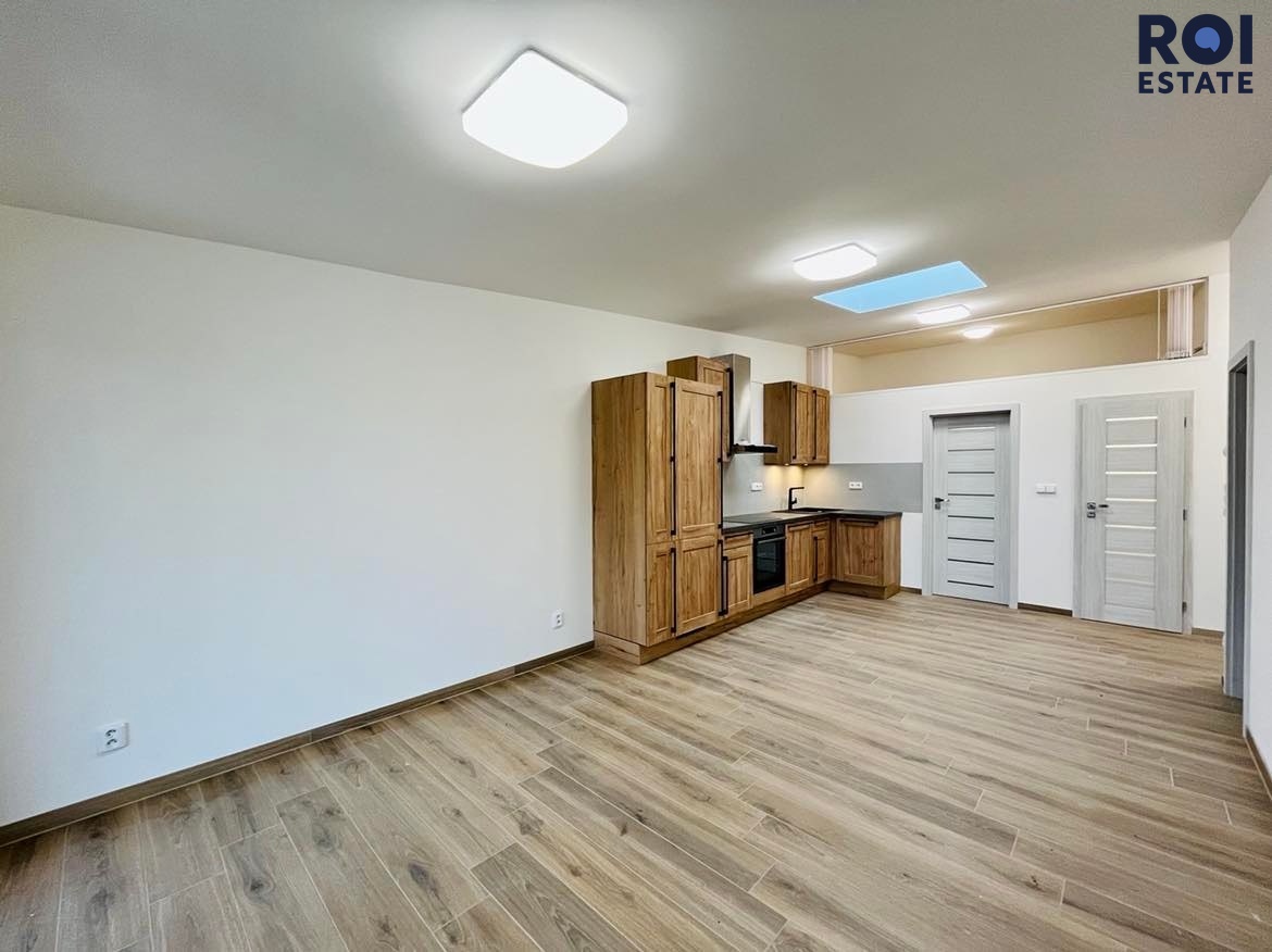 Tento byt se nachází v 1. patře dvojpodlažního cihlového domu a nabízí se jako nevybavený. Při vchodu Vás přivítá předsíň, která plynule přechází v obývací prostor s kuchyňskou linkou. Kuchyňská linka je Vám plně k dispozici včetně spotřebičů jako je lednice, myčka a také elektrická trouba. Po pravé straně nalezneme koupelnu se sprchovým koutem a toaletou. Výhodou je také malá komora, která Vám může posloužit jako úložný prostor navíc. V rámci úložných prostor je zde skvěle vyřešen snížený strop nad koupelnou, který Vám může sloužit jako odkladný prostor.