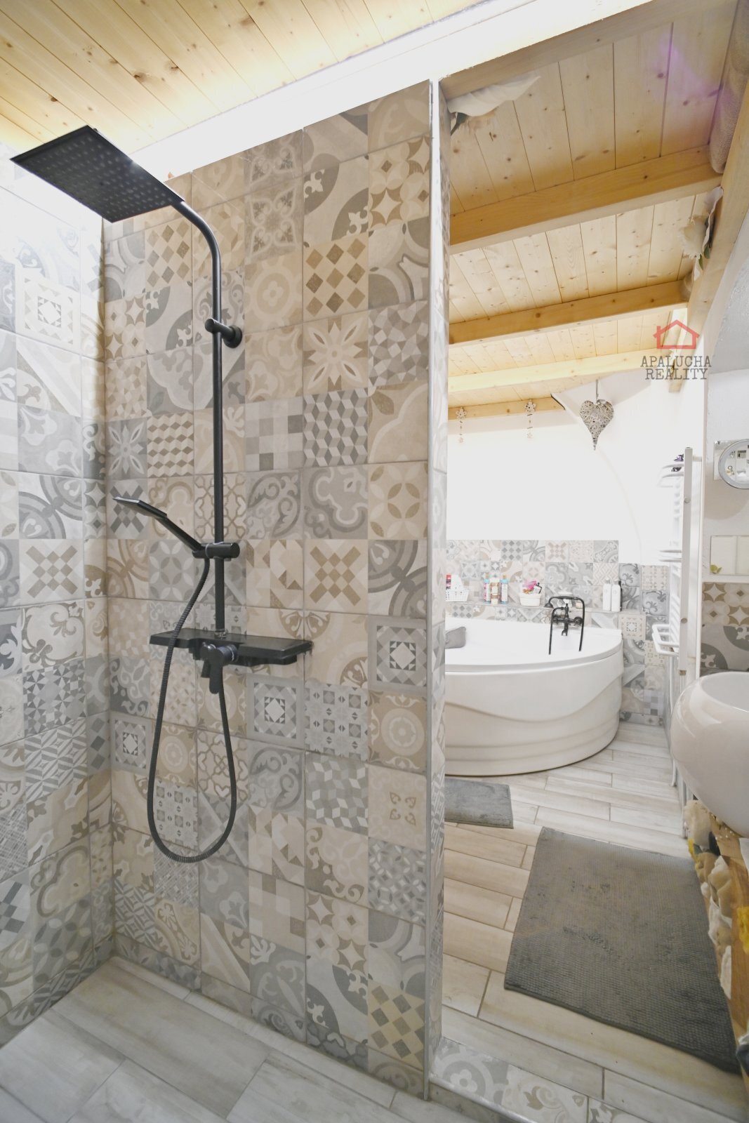 Neuvěřitelné kouzlo této nemovitosti na Vás dýchne okamžitě po vstupu do haly spojené s kuchyní a obývacím pokojem, kde nechybí ani krb a ranní kávu si můžete vychutnat přímo na břehu rybníka, nebo na terase s vířivkou.
