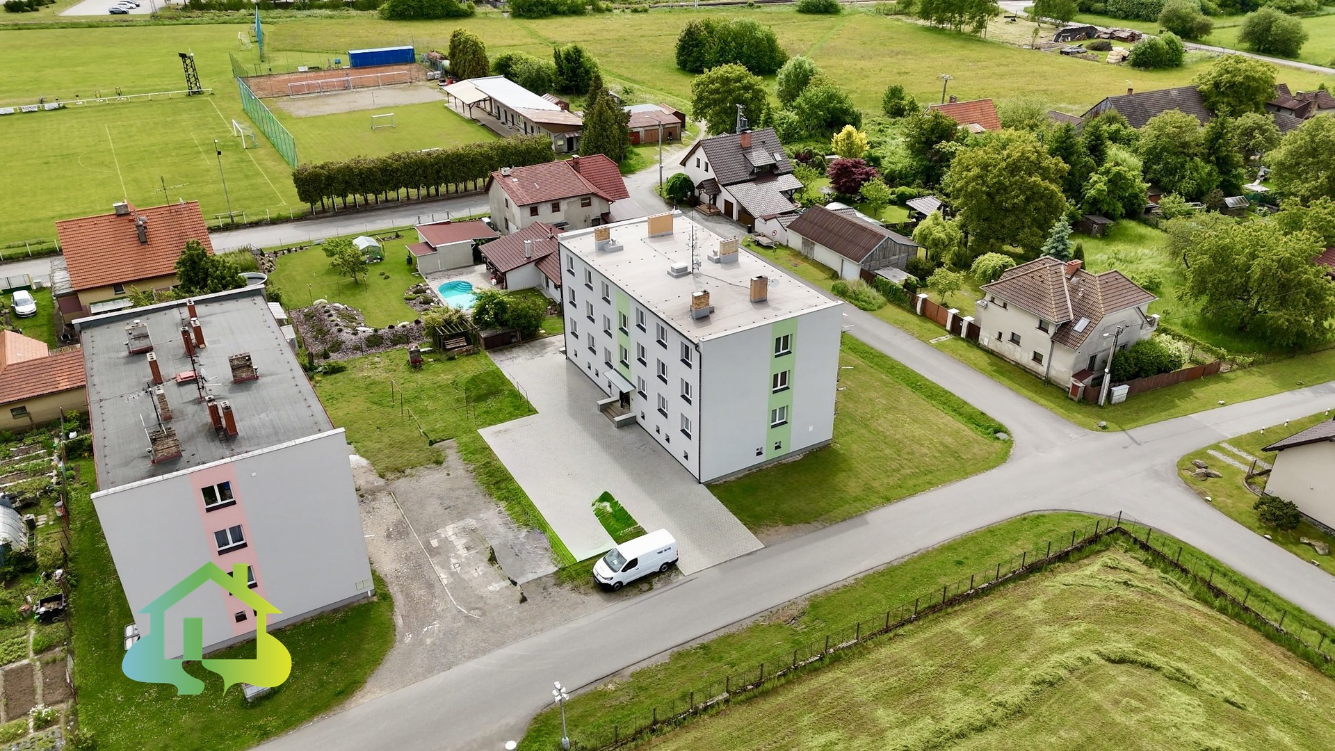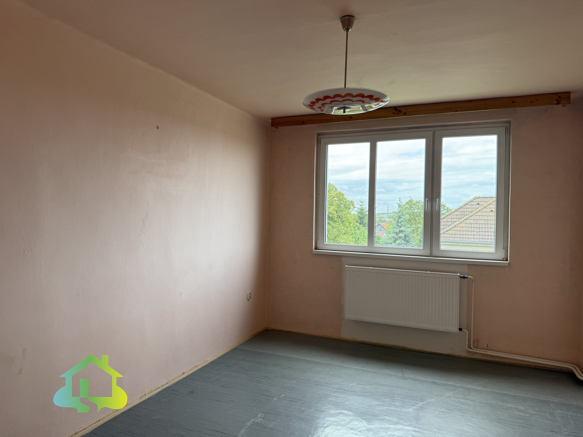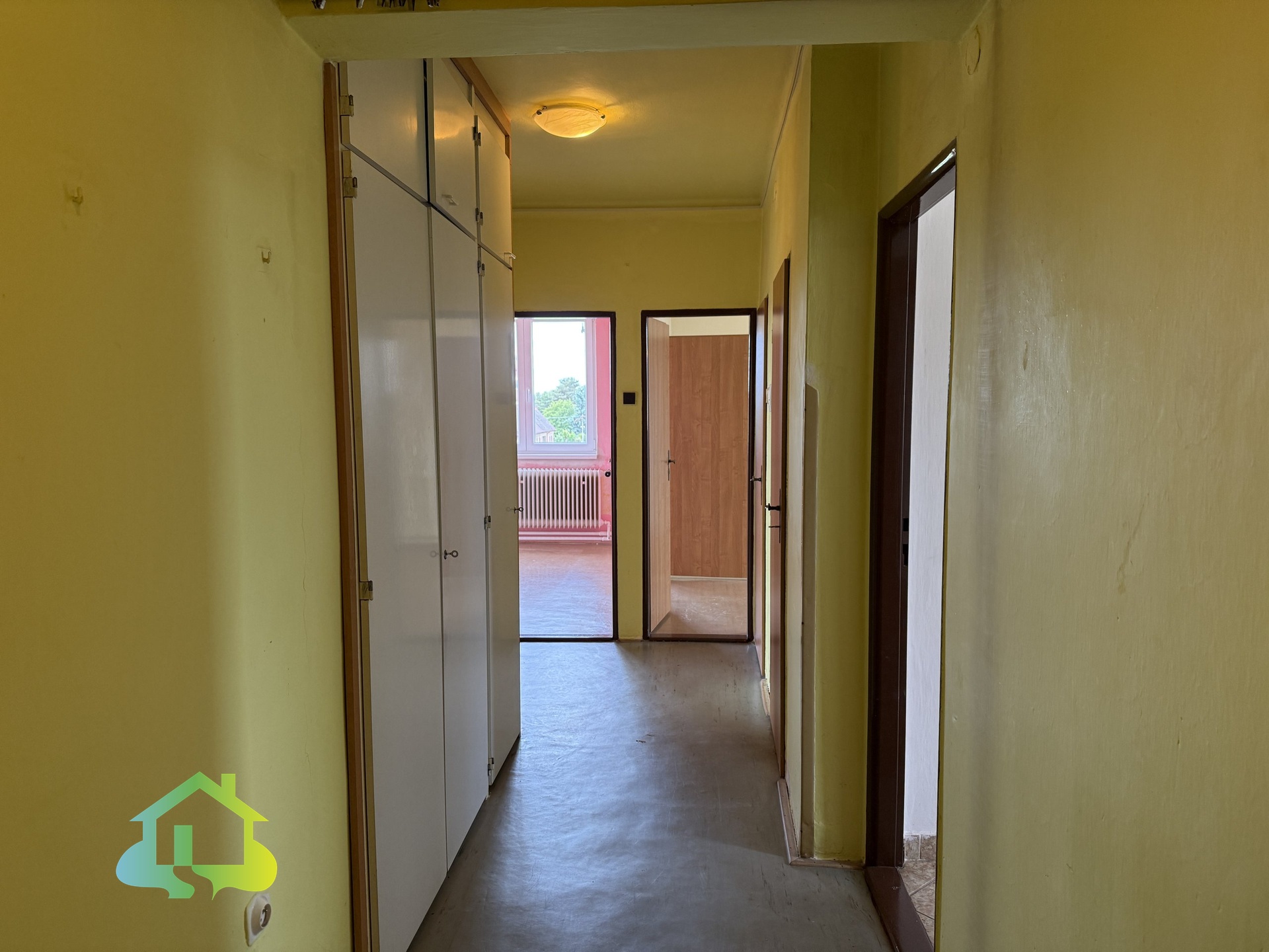 Dům prošel kompletní revitalizací – je zateplen, má novou fasádu a plastová okna. Bytová jednotka disponuje prostornou chodbou, ze které je vstup do tří neprůchozích pokojů, kuchyně a jídelny. Koupelna s vanou je v původním stavu, toaleta je oddělená. Z jednoho z pokojů je vstup na balkon s výhledem do klidného okolí. Podlahy jsou pokryty linoleem a dlažbou. Vytápění zajišťuje vlastní elektrický kotel.