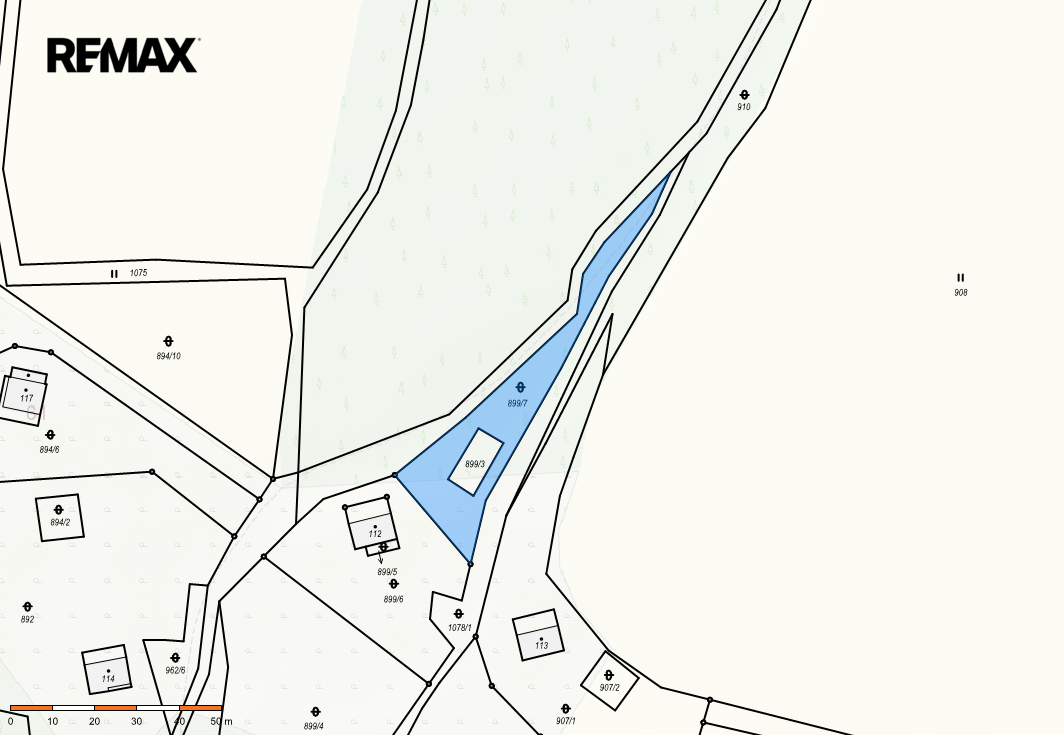 Součástí pozemku je také el. kaplička což může být významnou výhodou pro budoucí využití pozemku.