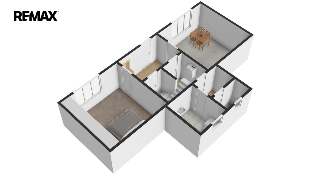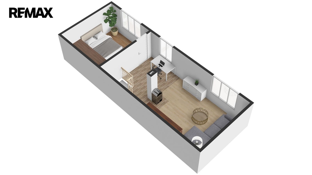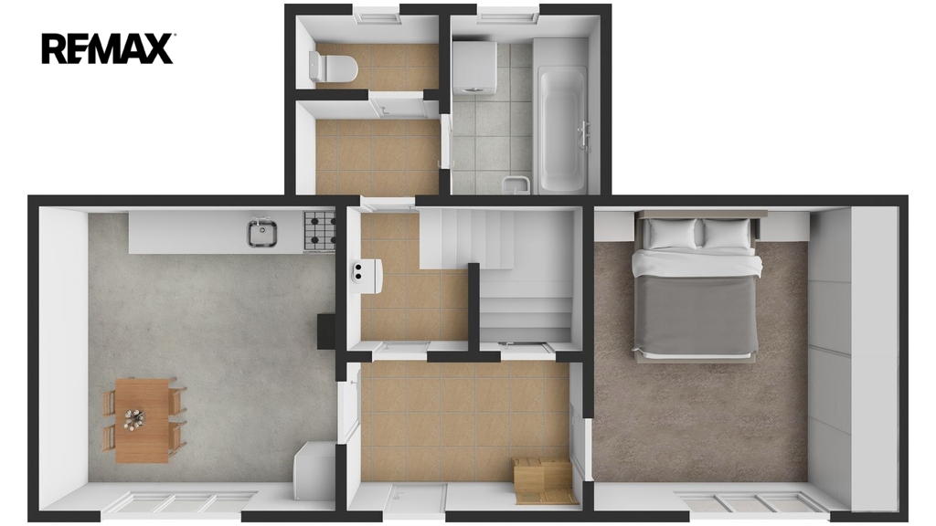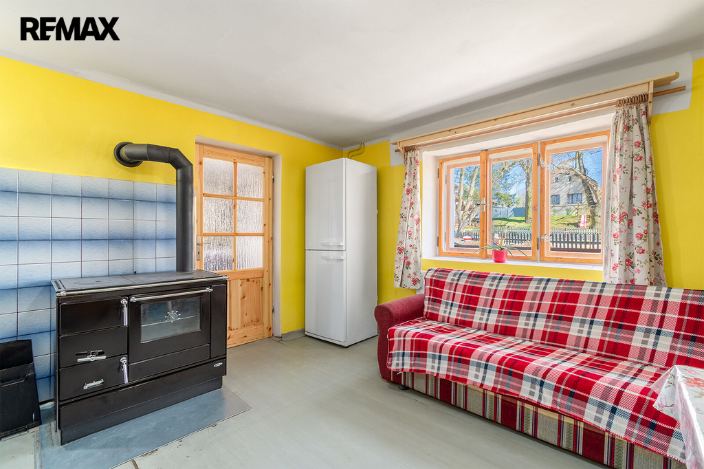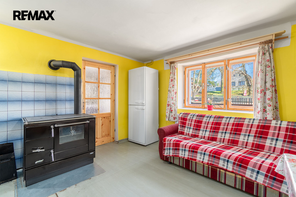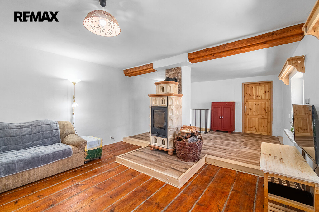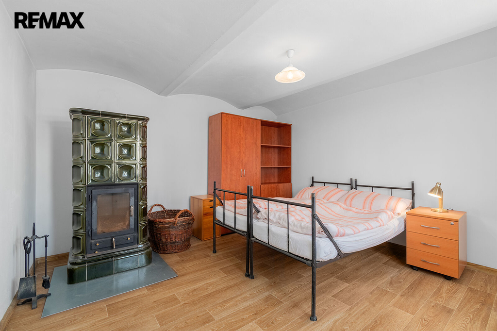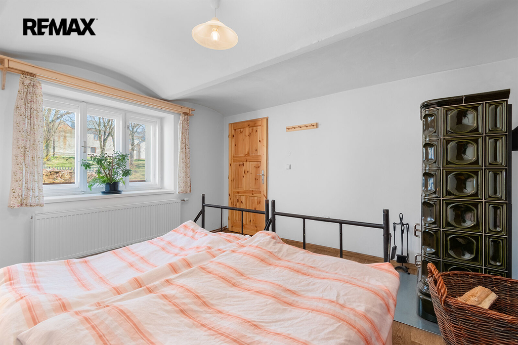 Disponuje jednou bytovou jednotkou, přičemž v přízemí naleznete kuchyni, pokoj, koupelnu, samostatné WC, předsíň a chodbu, kde je umístěn elektrický kotel na vytápění celého domu. Kachlová kamna s výměníkem, která vytápí téměř celý dům, máme tedy dva způsoby vytápění, naleznete v patře domu. Jsou umístěna v největší místnosti, přes kterou se dostaneme do ložnice. Velká místnost lze rozdělit, v minulosti již oddělena byla. Další kachlová kamna jsou umístěna v pokoji v přízemí, v kuchyni je navíc umístěn sporák na tuhá paliva.