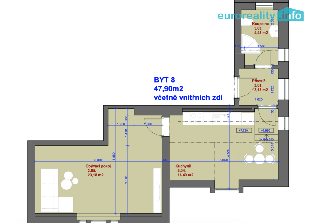 - Celková podlahová plocha: 47 m²