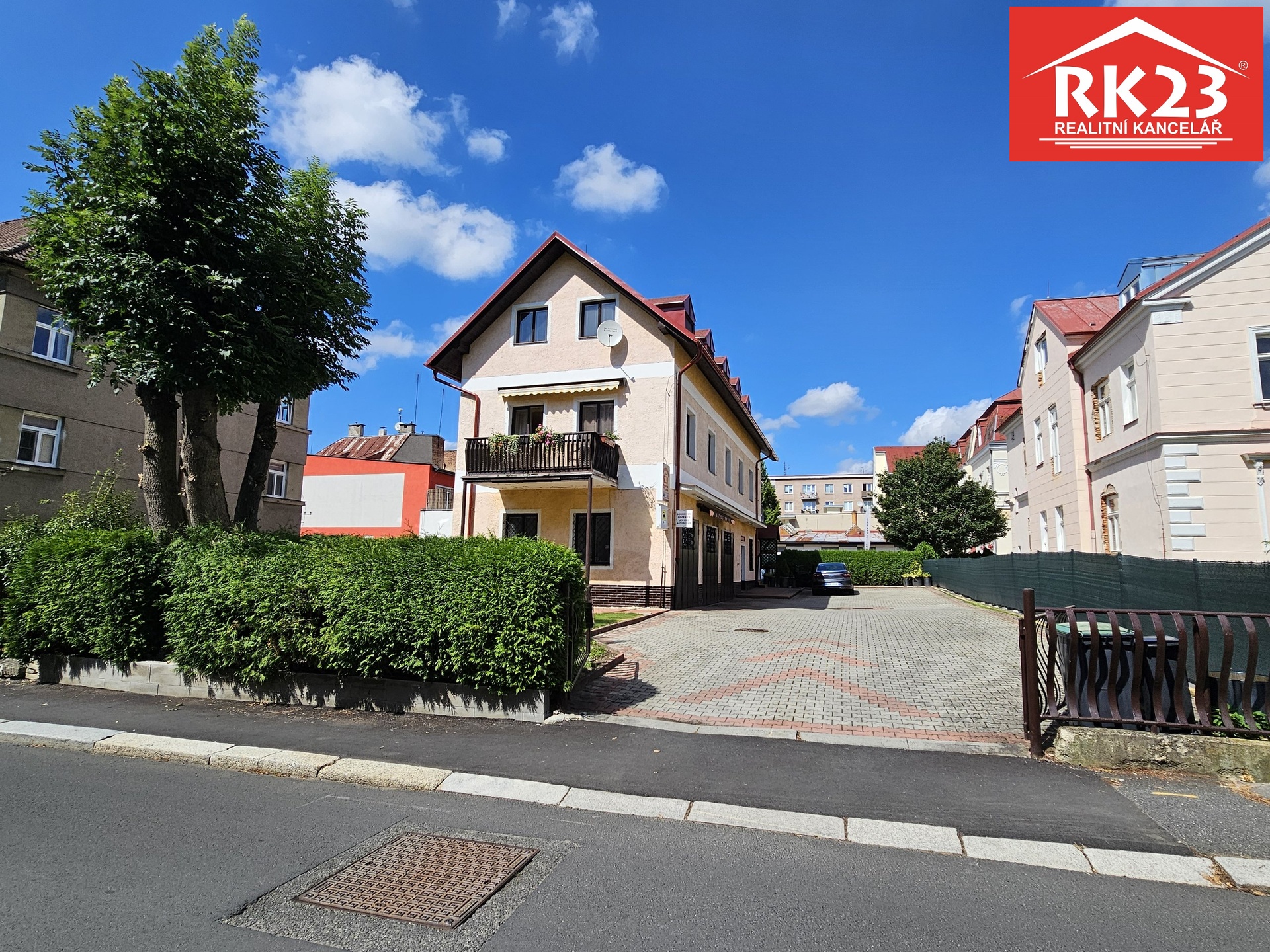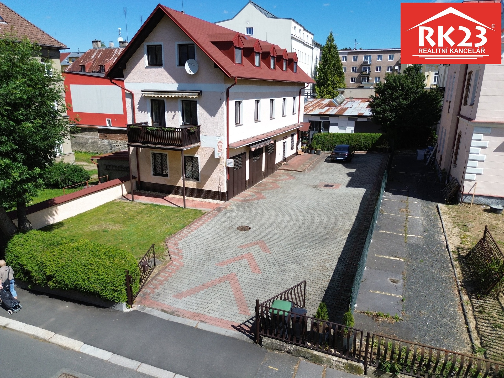 Hlavní třída (vjezd z ul. Komenského). Dům disponuje třemi nadzemními podlažími, kde v přízemí domu je umístěna autodílna s kanceláří a vlastním sociálním zázemím.V prvním a druhém patře je rozmístěn velmi prostorný, světlý byt s balkonem, kde v prvním patře se nachází velkorysý obývací pokoj, který je orientovaný na jižní stranu a má přímý vstup na balkon. Dále v prvním patře je umístěna hala s jídelním koutem, kuchyně, koupelna a oddělená toaleta. Ve druhém patře se nachází prostorná ložnice, pokoj, technická místnost, koupelna a také oddělená toaleta. Vytápění domu je zajištěno elektrickým kotlem a ohřev vody bojlerem. Pozemek je z větší části pokryt zámkovou dlažbou a zbylá část je zatravněná. Dům, vzhledem umístění v centru města, je vhodný jak k podnikání, tak i k bydlení. V okolí se nachází veškerá občanská vybavenost. Pro více informací kontaktujte makléře. S financováním Vám rádi poradíme.