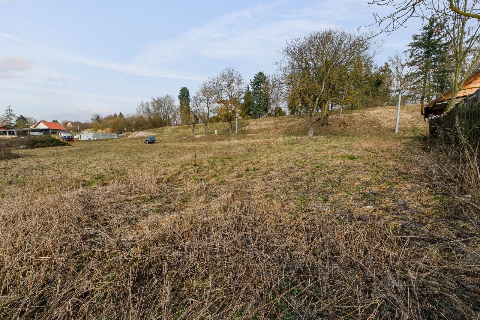 Velkou výhodou je také připravenost základních sítí – na pozemku je elektrická přípojka a na hranici pozemku se nachází přípojka obecního vodovodu.