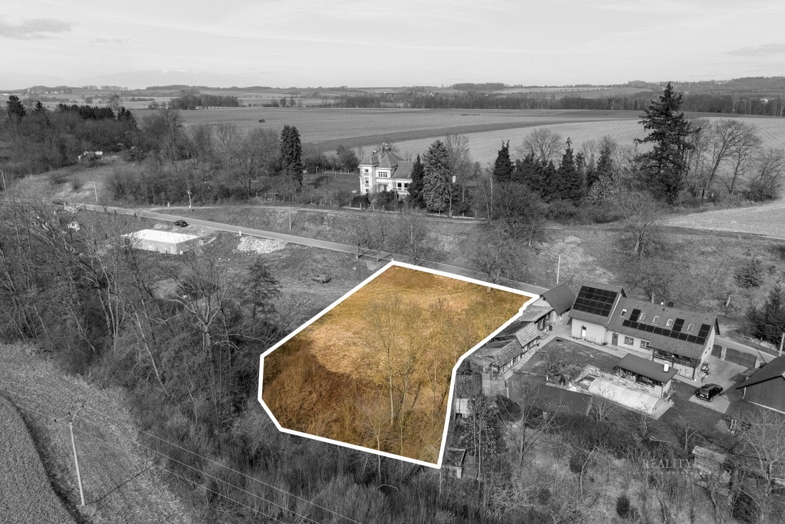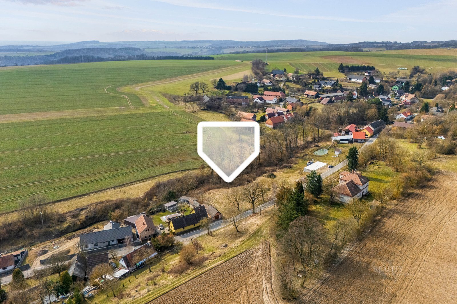 Pozemek se nachází v klidné venkovské lokalitě obklopené přírodou a díky své velikosti poskytuje dostatek místa nejen pro samotný dům, ale také pro zahradu, odpočinkovou zónu nebo rekreační zázemí.