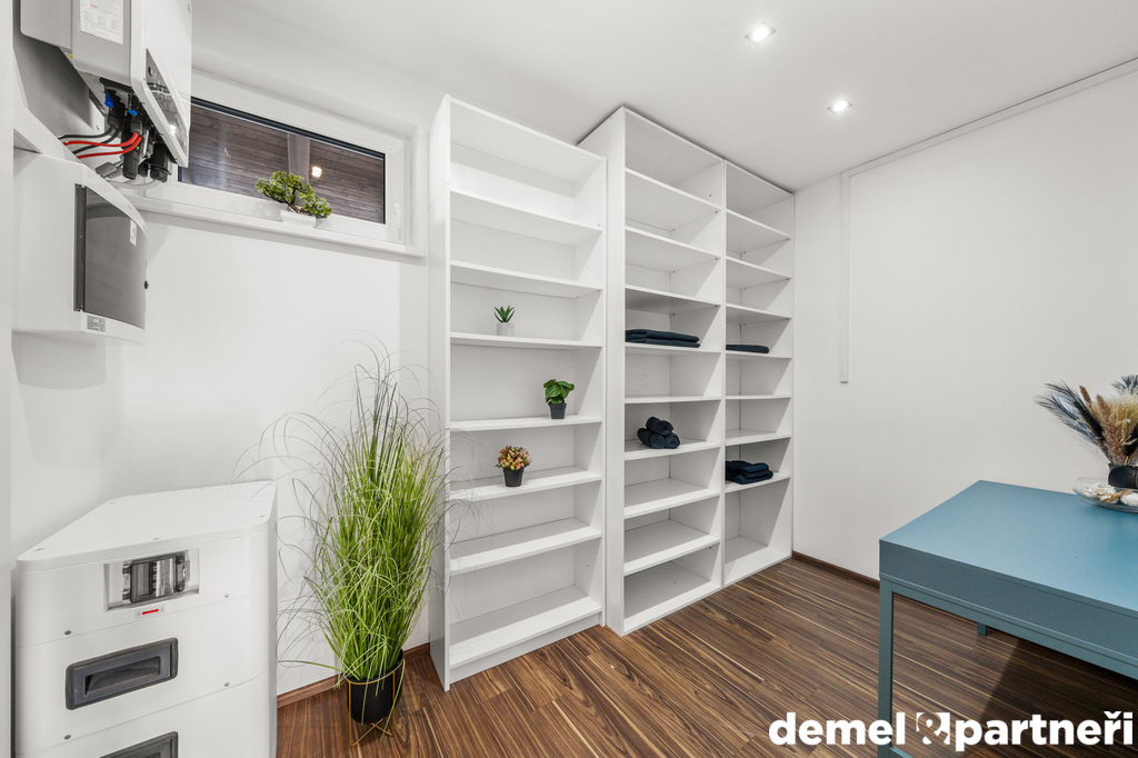 No a co venky? Tak tam na tebe čeká 642 m² udržované zahrady, která je rovinatá a naprosto ideální k jakémukoliv využití. Výhledy do okolní krajiny a naprostý klid. Na pozemku dále najdeš dřevěný přístřešek pro auto včetně elektro nabíječky. V létě pak oceníš obrovskou pergolu podél celé stěny domu, díky které si dopřeješ ty pravé venkovní grilovačky a další technickou místnost třeba pro sekačku anebo jiné zahradní potřeby.