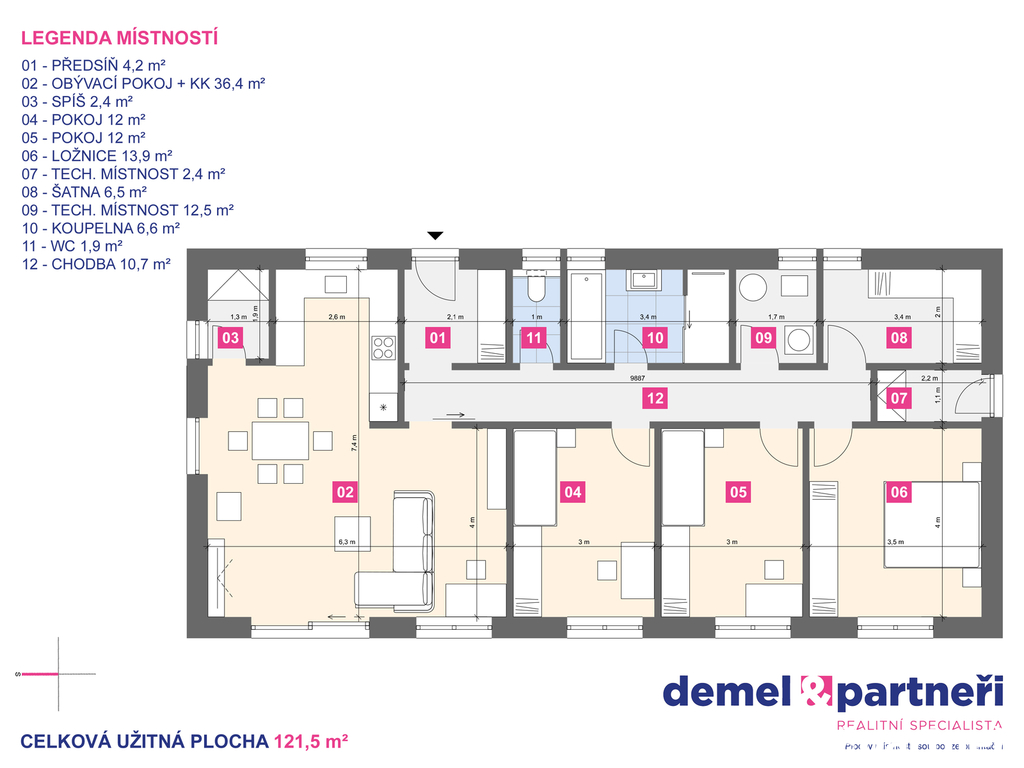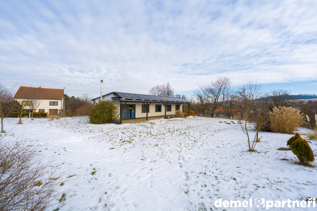 Přízemní rodinný dům z roku 2010 ti nabídne dispozici 4+káká a celkem 121 m² čisté podlahové plochy. Díky tomu dostáváš poměrně dost prostoru pro celou tvou rodinu a dokonce i návštěvu. Žádná dřevostavba, ale betonový sendvič s hromadou tepelné izolace, teplo z elektrických podlahových rohoží a fotovoltaika na střeše. Tohle vše ti zaručí nízké náklady na provoz a vysoký komfort bydlení. No a jak to vypadá uvnitř? Vstupní chodbička a poté centrální chodba. Z té se dostaneš do obývacího pokoje s kuchyňským koutem, komorou a krbovýma kamnama, třech neprůchozích pokojů, koupelny se sprchou a vanou, záchodu a dvou technických místností.