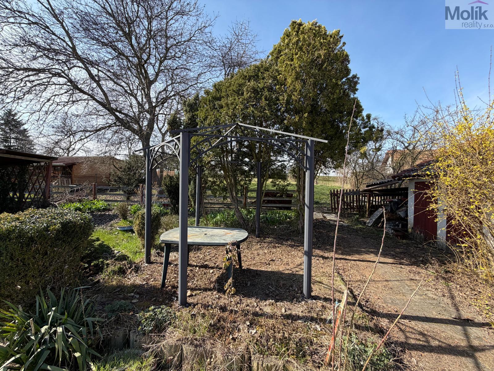 Zahrada nabízí zázemí pro kutily i zahrádkáře na pozemku se nachází prostorná garáž, dílna a dvě kůlny. Dále na zahradě najdete plodící ořechy, jablka, třešně i hrušně.