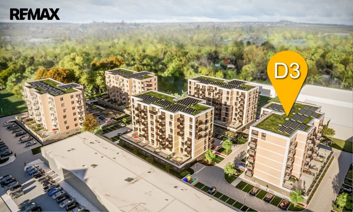 Celkem 53 bytových jednotek v objektu D3 (osobní vlastnictví) je navrženo v dispozicích 1+kk, 2+kk, 3+kk a 4+kk s plochami od 29 m² do 92 m².