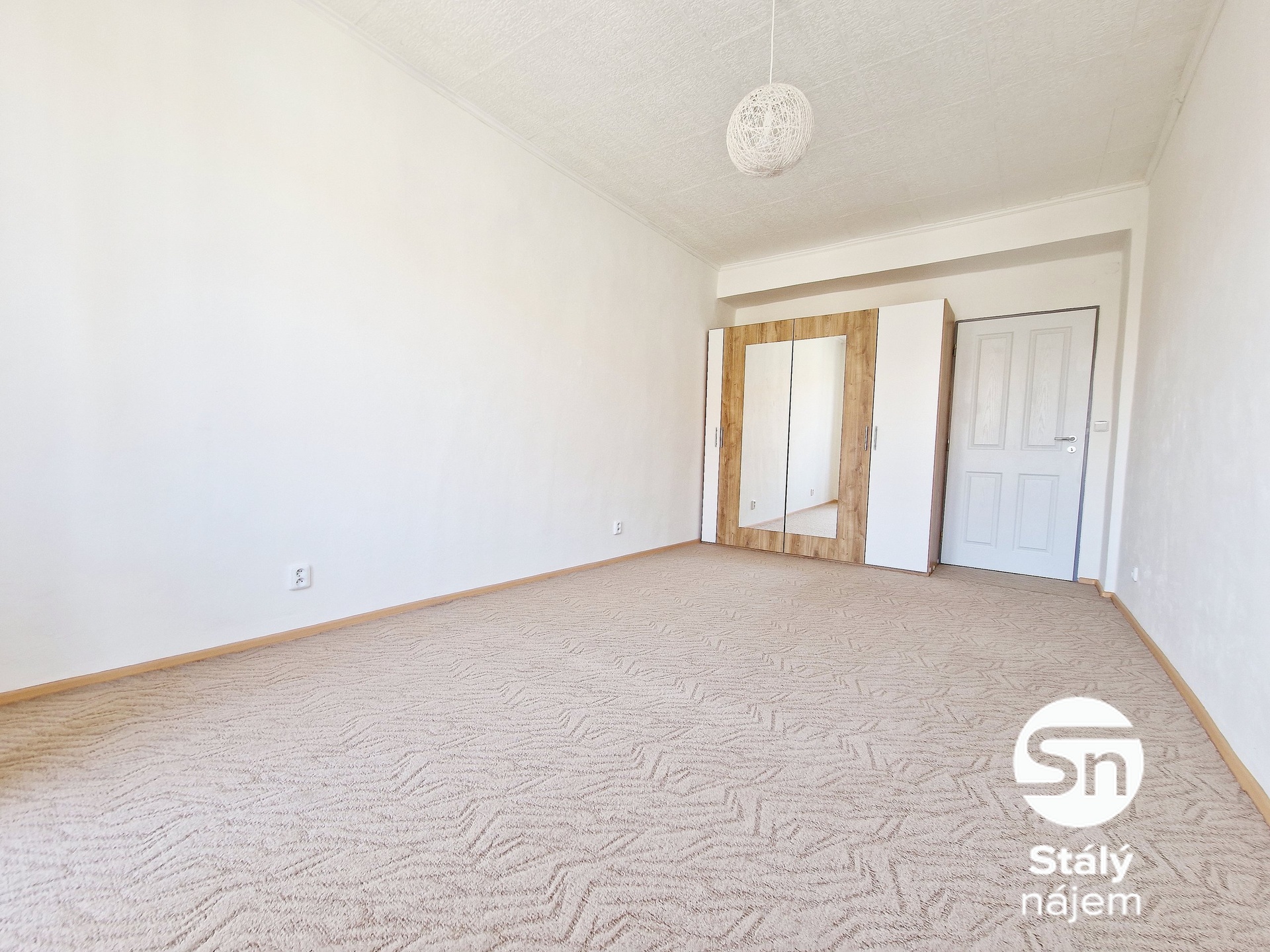 Kuchyně je vybavena bílou kuchyňskou linkou s elektrickou troubou s el. varnou deskou, digestoří a pračkou. Obývací pokoj je nezařízený. Posledním pokojem je ložnice, která je vybavena skříní, z tohoto pokoje je vstup na balkon. V koupelně je vana a toaleta je samostatně. V chodbě je velká skříň pro uložení vašich věcí.