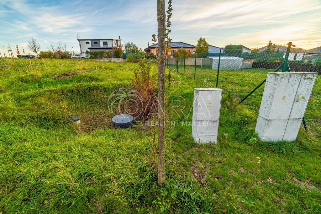 Na pozemku jsou veškeré potřebné přípojky pro výstavbu domu, tj. přípojka elektřiny a plynu, v šachtě je umístěna přípojka vodovodního řadu a kanalizace.