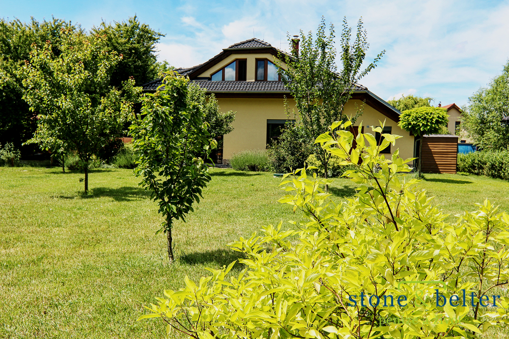 Součástí pozemku je pečlivě udržovaná zahrada o výměře 835 m², která nabízí dostatek prostoru pro odpočinek, rodinné aktivity i zahradničení. Krajní částí pozemku protéká Líbeznický potok, jež je bez přítoků, a proto nehrozí riziko záplav. Orientace na jihovýchod zajišťuje dostatek denního světla po celý den.