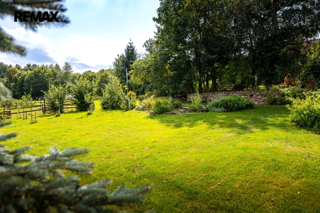 Součástí nemovitosti je zastřešené sezení s dalším možným využitím, užitná plocha 39 m2. Navazující zahrada o rozloze 443 m2. Další pozemek u nemovitosti o výměře 457 m2 je za výhodných podmínek pronajat od státního pozemkového úřadu s předkupním právem.