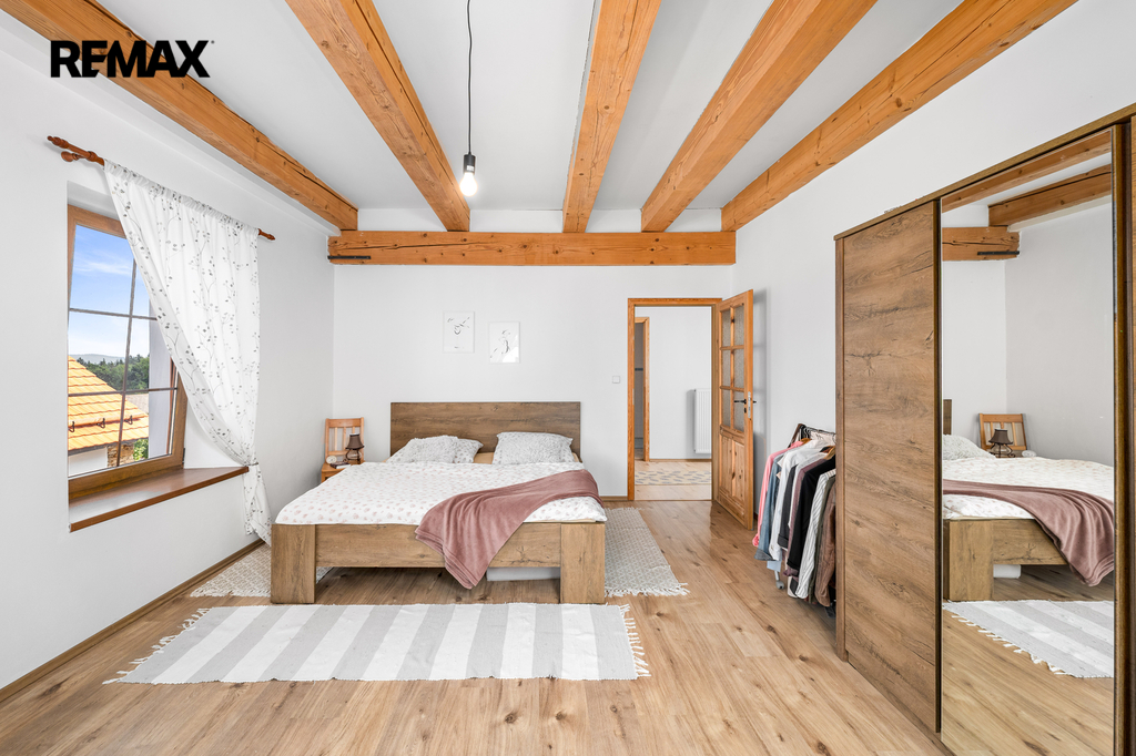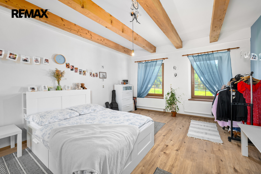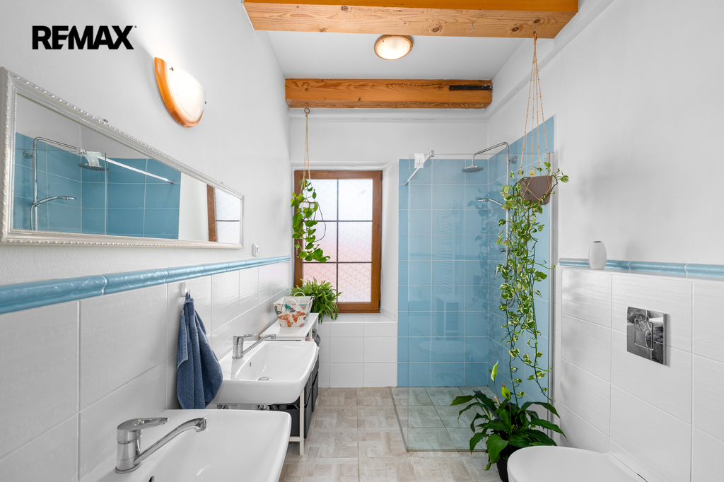 2. NP 114 m2: 2x velký pokoj, koupelna (vana, sprchový kout, umyvadlo, WC) + apartmán s vlastní koupelnou a samostatným vchodem schodištěm z venku.
