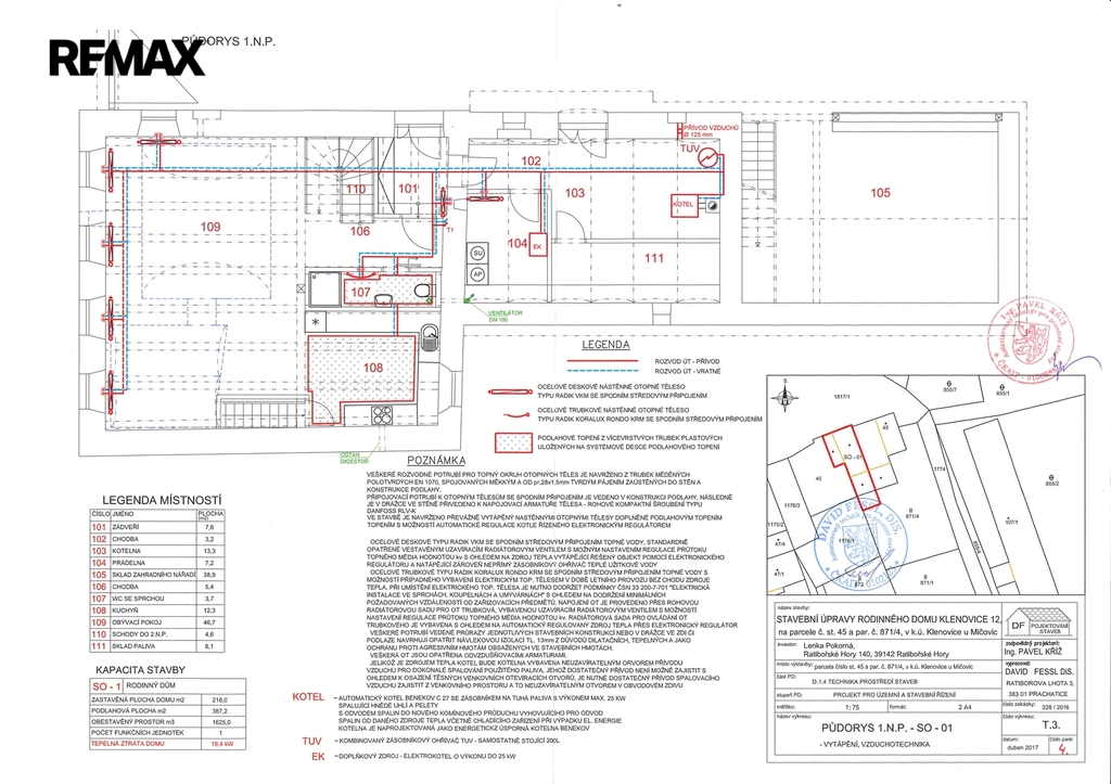 1.NP 112 m2: vstup/předsíň, chodba, kuchyně, velký obývací pokoj, koupelna s WC, prádelna vč. technické místnosti, kotelna + sklad paliva.