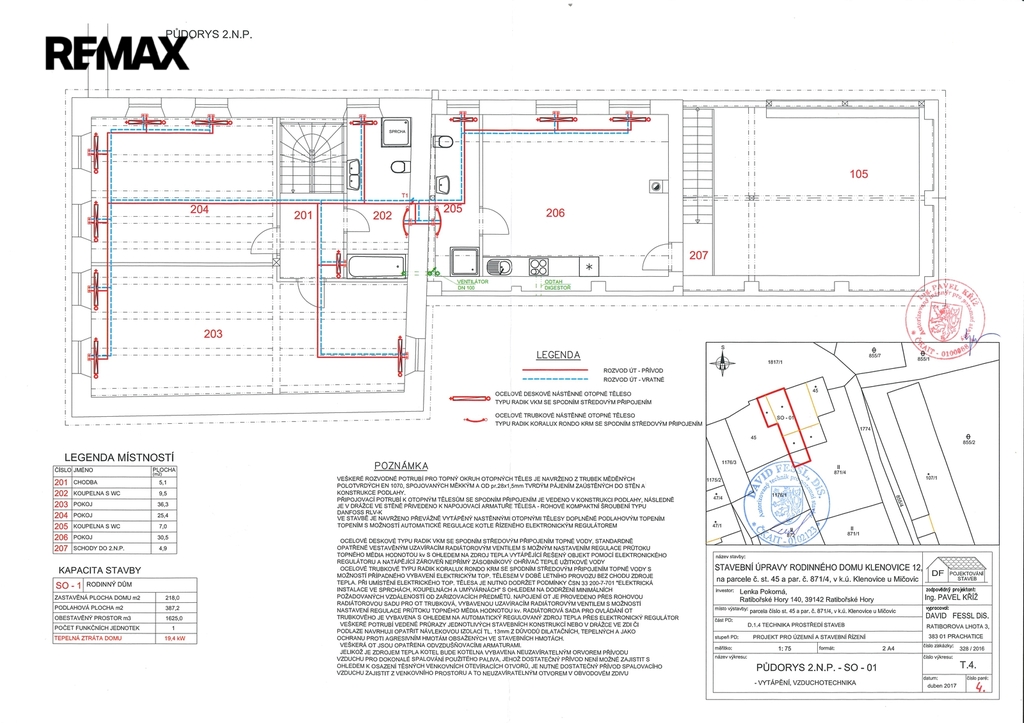 V roce 2017 prošla nemovitost kompletní rekonstrukcí interiéru: rozvody vody, odpadu, elektroinstalace, podlahy, omítky, koupelny atd.