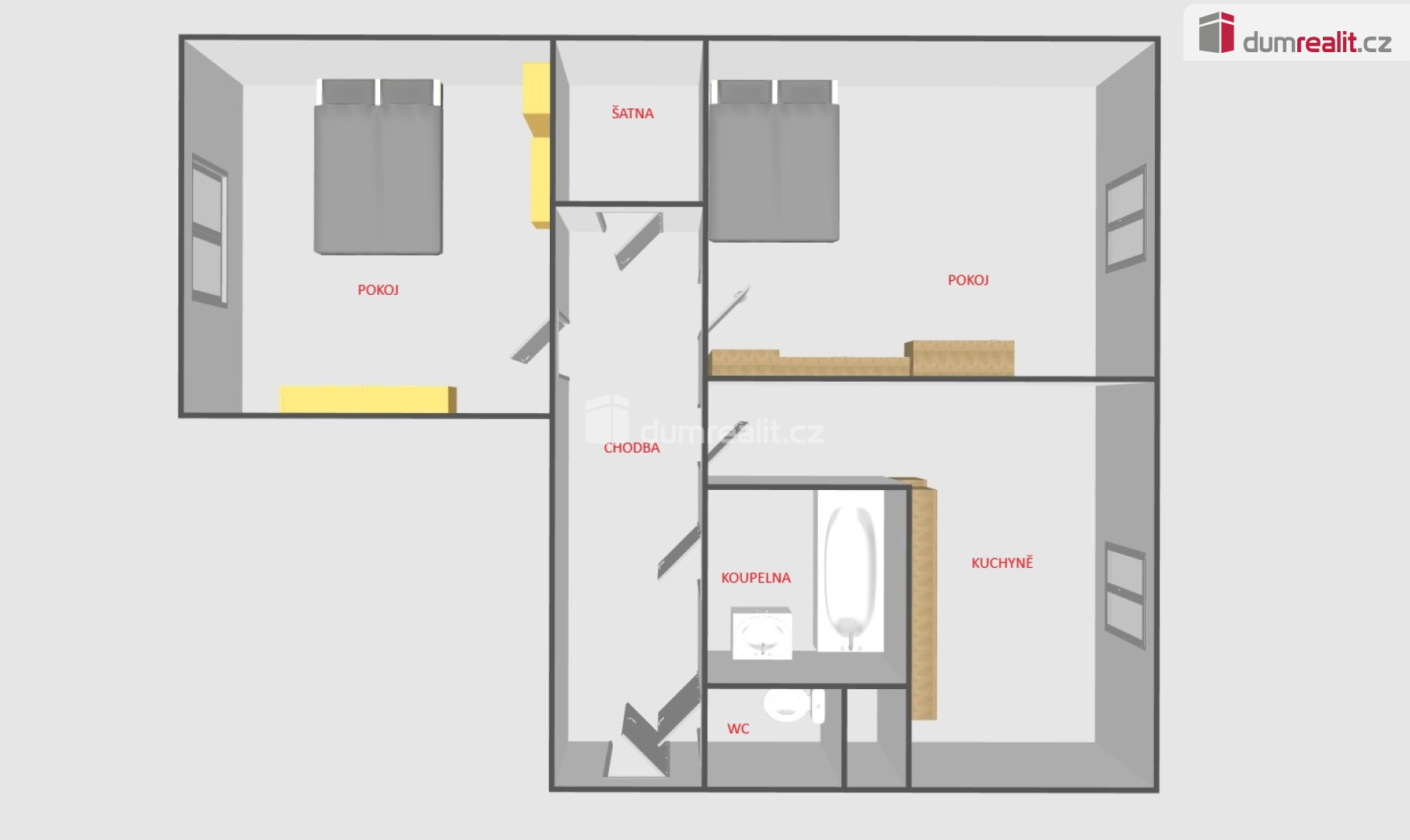 - Dispozice bytu: 2+1