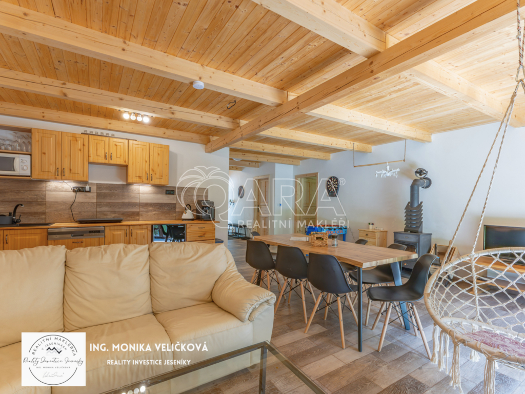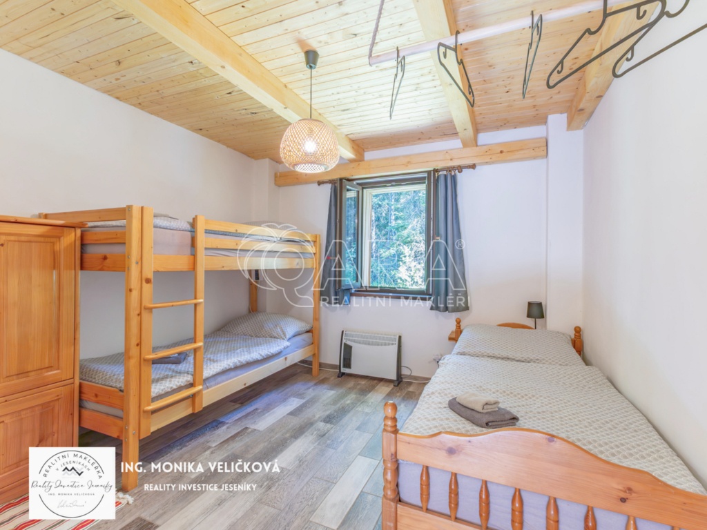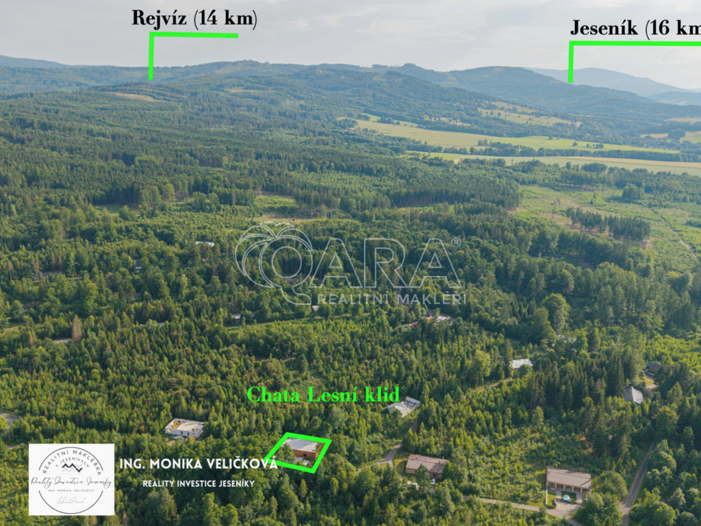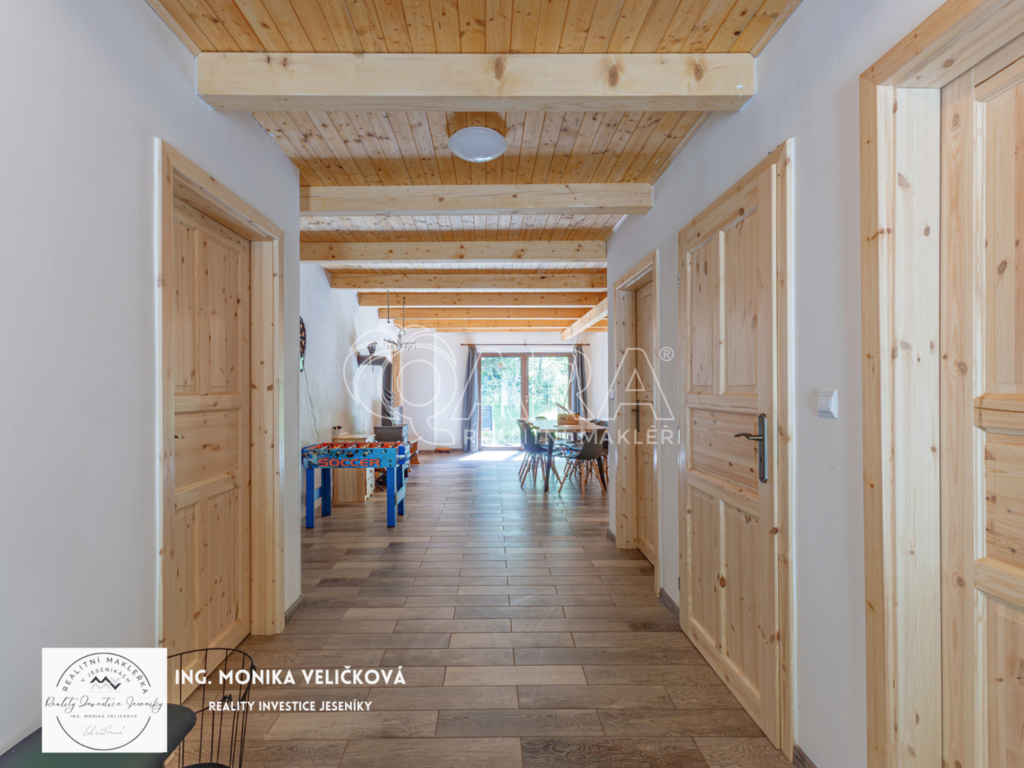 Chalupa stojí na klidném místě u lesa s vlastním pozemkem, přístupovou cestou a parkováním. Výborná dostupnost – Jeseník 10 min, Mikulovice 5 min, Ostrava 2 h, Olomouc 1,5 h.