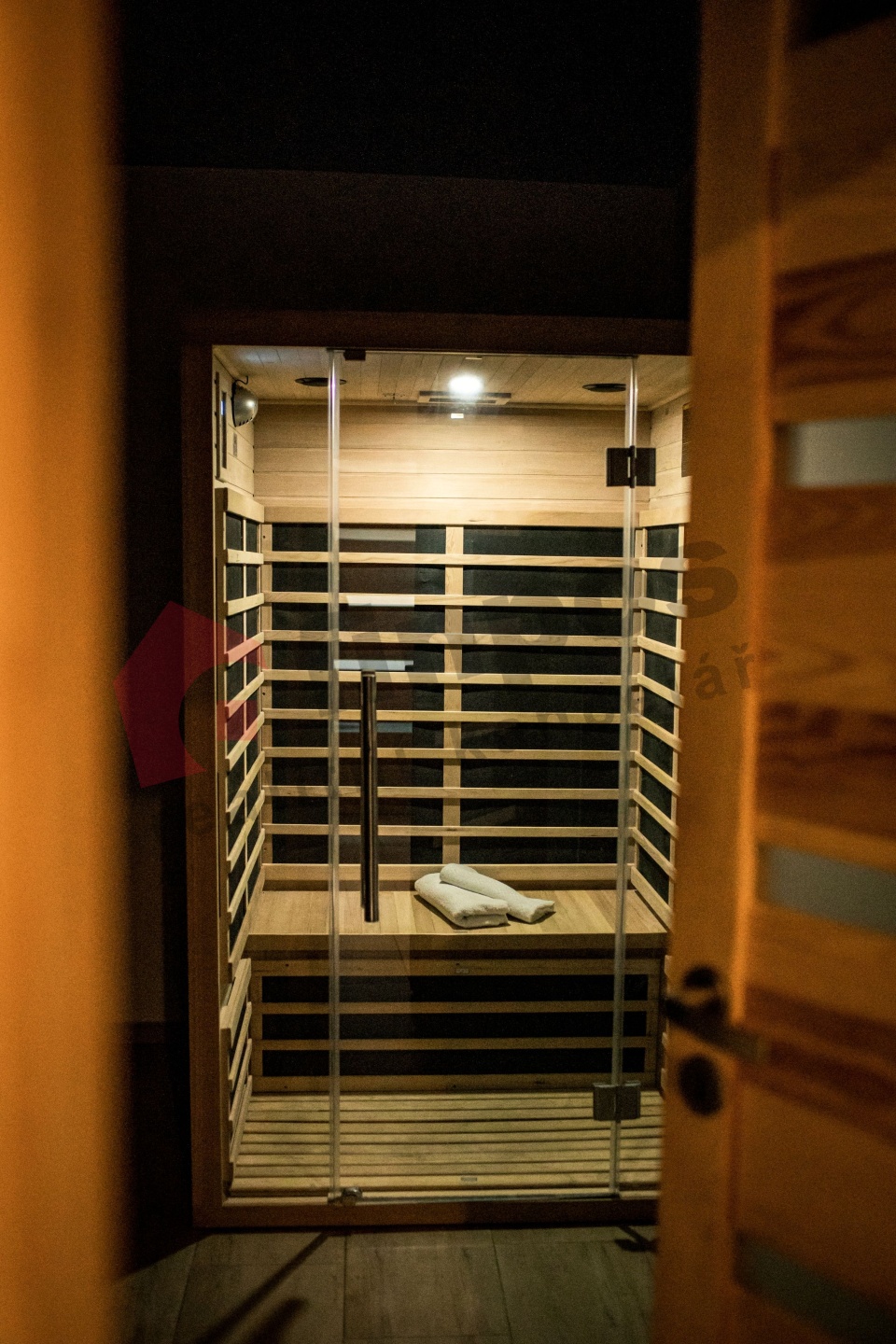 Kromě atraktivního interiéru nabízí objekt také možnost grilování na zahradě a technickou místnost pro uskladnění kol nebo lyží, což ocení zejména aktivní hosté. Příjemné vytápění je zajištěno elektrickými krby, přímotopy i podlahovým topením v koupelnách.