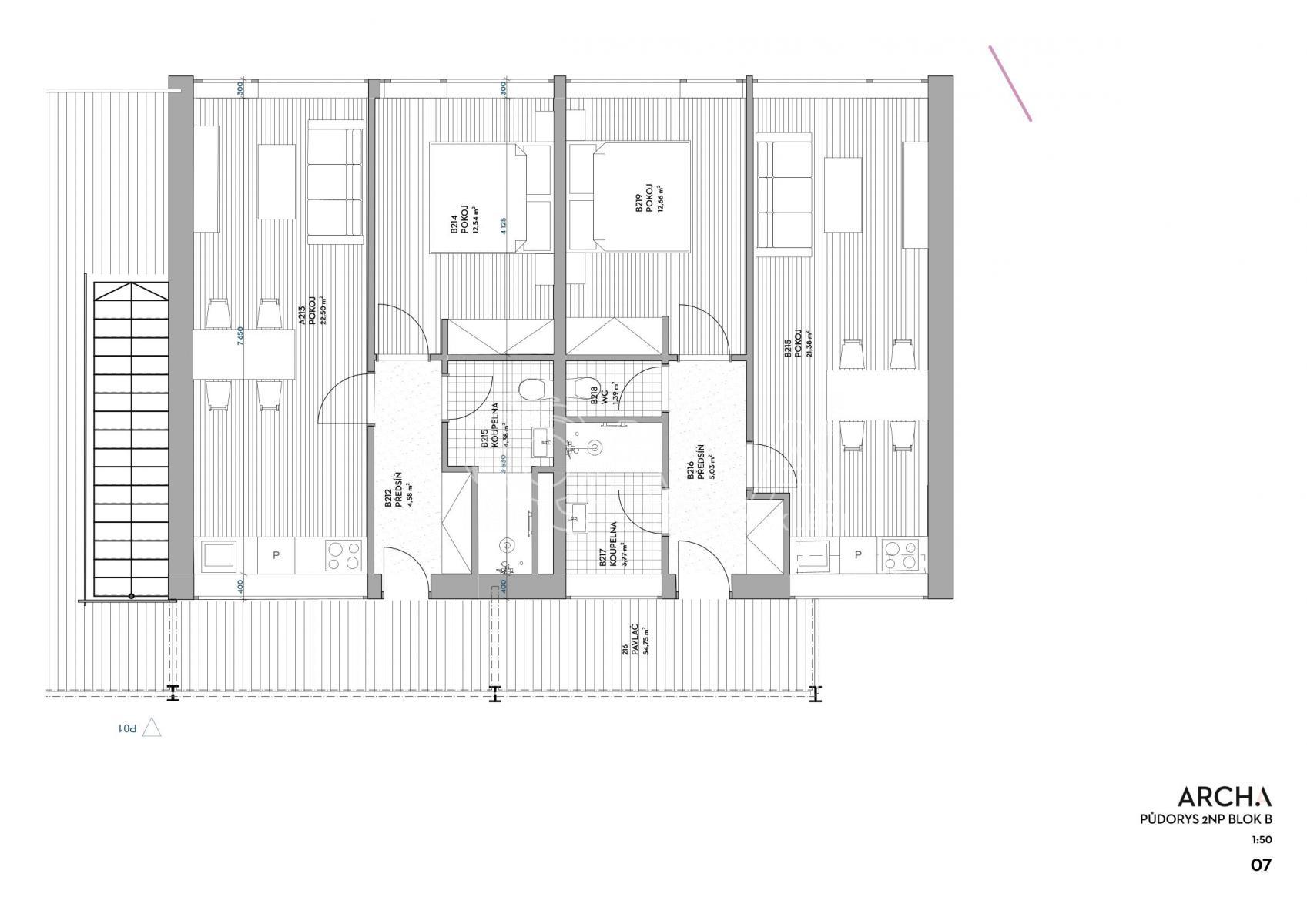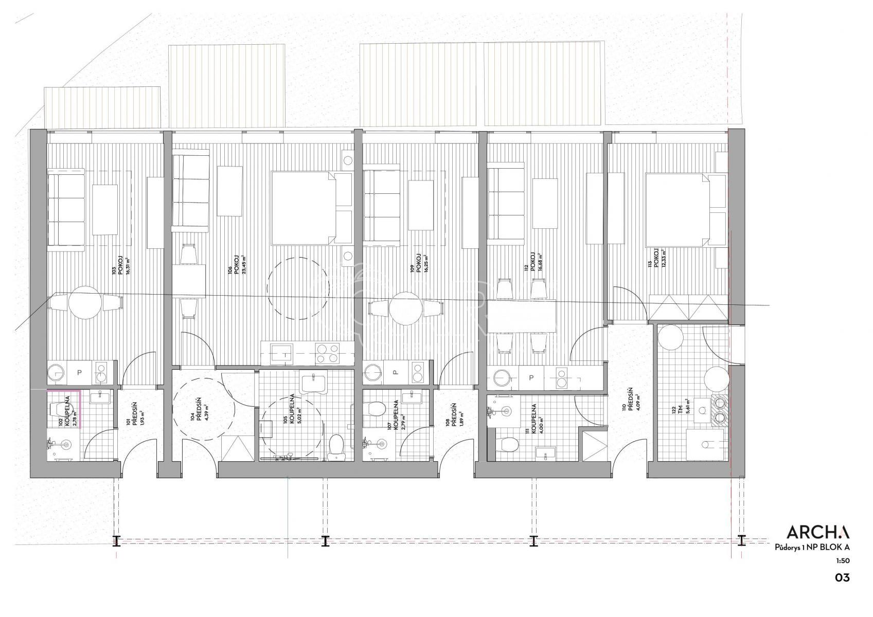 Součástí projektu budou byty různých dispozic, které poskytnou plnohodnotné zázemí pokoje, koupelny, sociální zařízení i společné prostory.