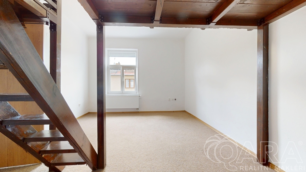 Pronájem světlého bytu 2+kk o výměře 49 m² po kompletní rekonstrukci, umístěný v 1. patře cihlového domu bez výtahu. Byt má vestavěné patro, které příjemně rozšiřuje obytný prostor a dodává interiéru vzdušnost. Je zařízen novou kuchyňskou linkou včetně lednice, sporáku, k dispozici je také pračka a vestavěná skříň na chodbě. Na podlahách je kombinace dlažby a koberce. Vytápění i ohřev teplé vody zajišťuje plynový kotel. Dům má k dispozici zahradu a nachází se v klidné lokalitě kousek od vlakového nádraží Milevsko. Byt je volný ihned,