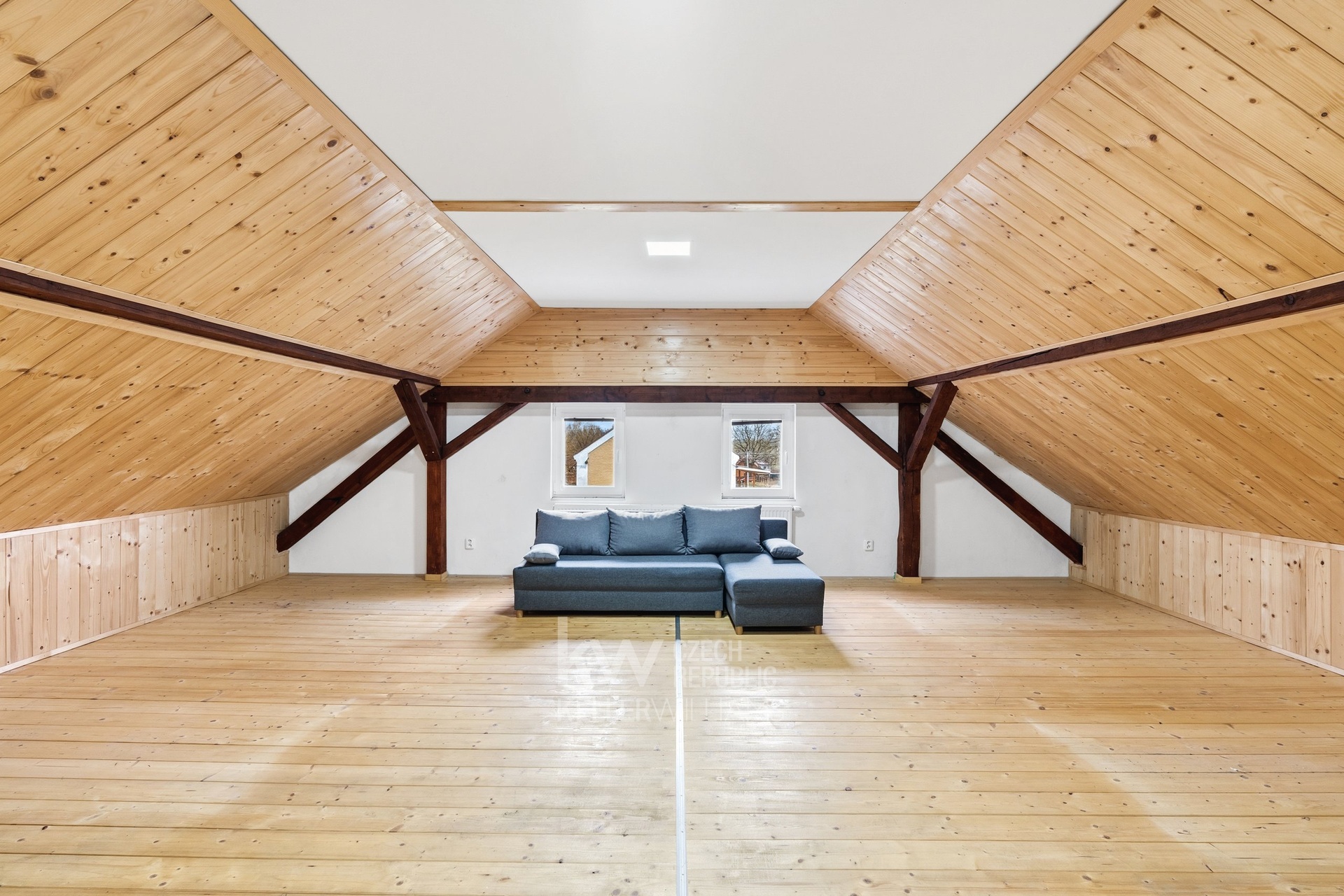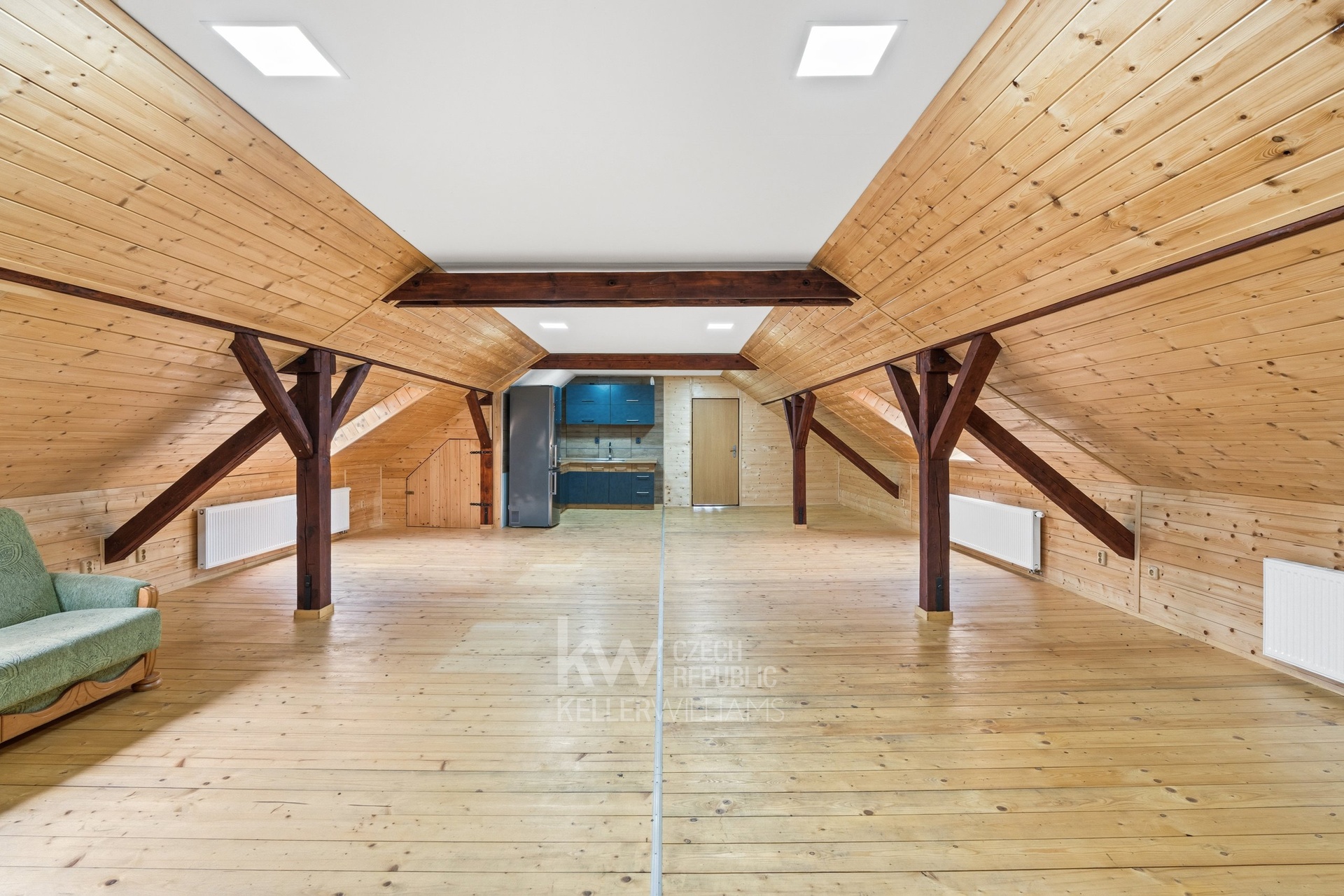 Nemovitost zaujme již na první pohled svým prostorem a variabilitou – k dispozici jsou rozsáhlé vnitřní plochy včetně velkorysého podkrovního prostoru, který nabízí další možnosti využití dle konkrétního záměru. Objekt je vhodný k úpravám a přizpůsobení podle potřeb budoucího majitele, a právě v tom spočívá jeho největší přidaná hodnota.