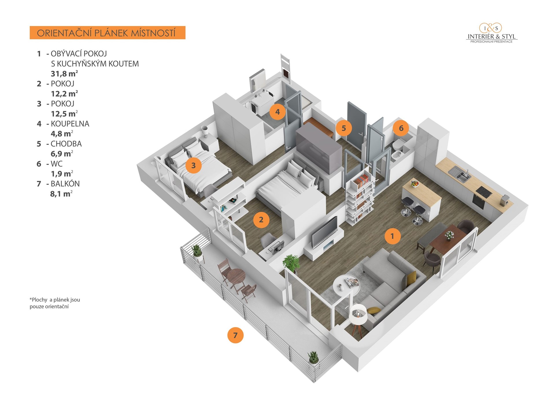 - Dispozice bytu: 3+kk
