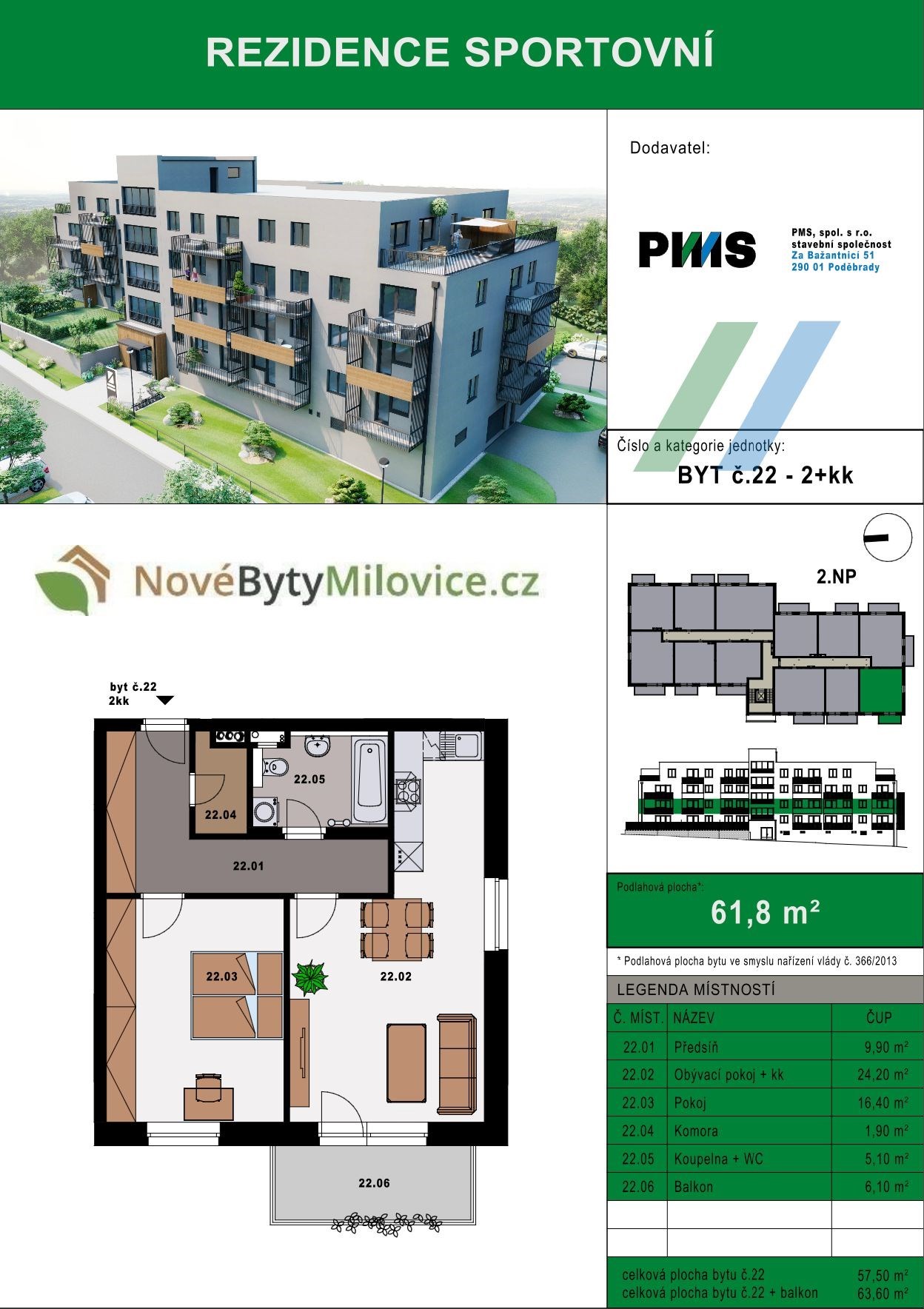 Dovolte mi představit jeden ze 44 krásných bytů v nově vznikajícím projektu Rezidence Sportovní v Milovicích. Výstavba nyní započala a realizuje ji společnost s dlouholetou tradicí a praxí v oboru, firma PMS Poděbrady.