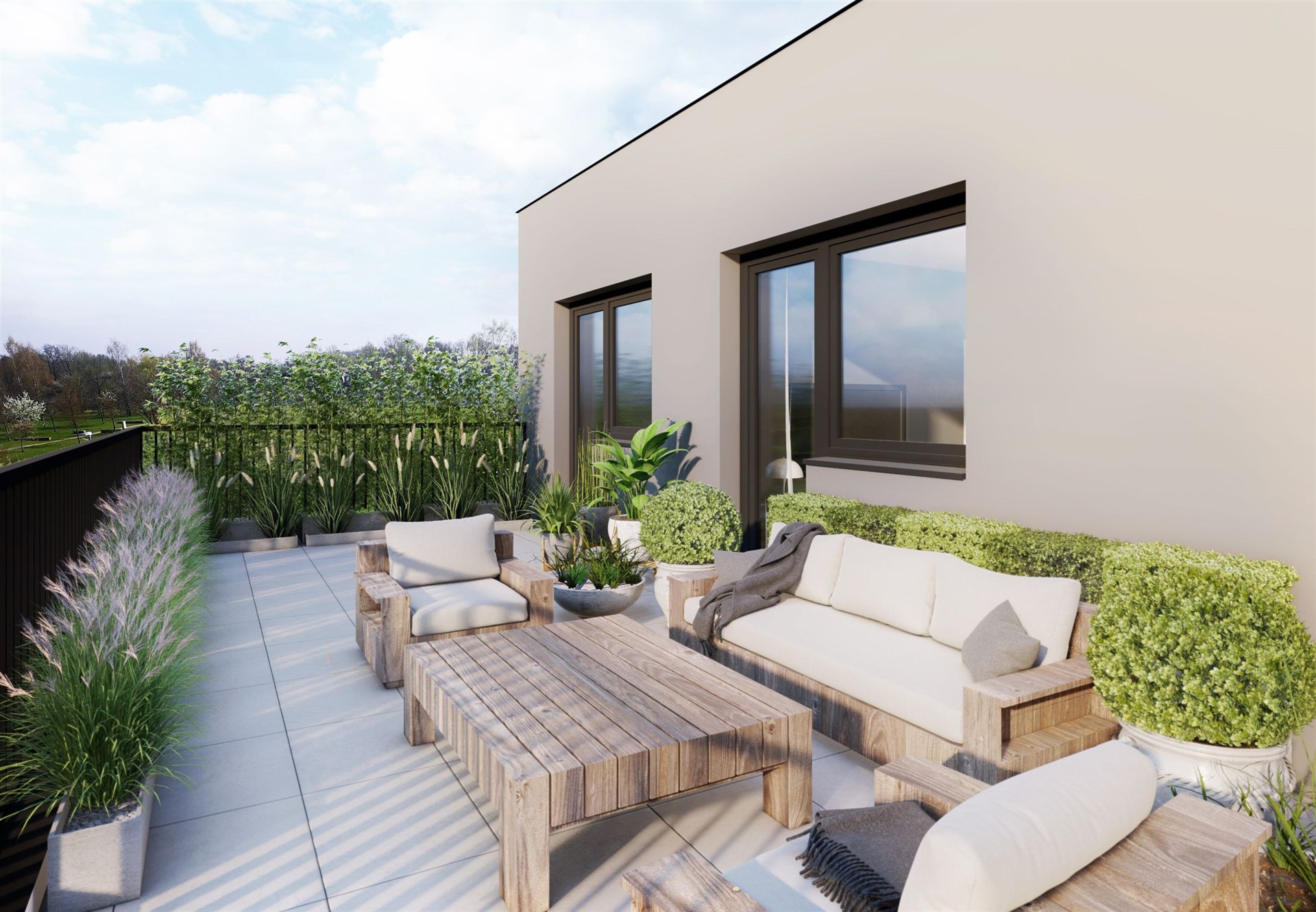 • Každý byt má balkon, terasu nebo předzahrádku